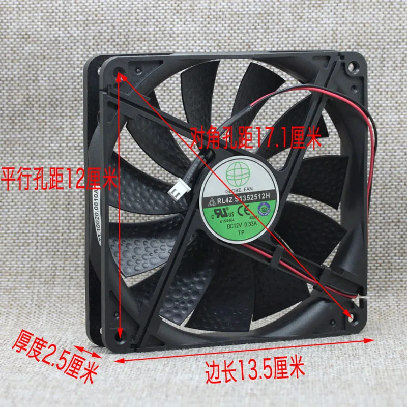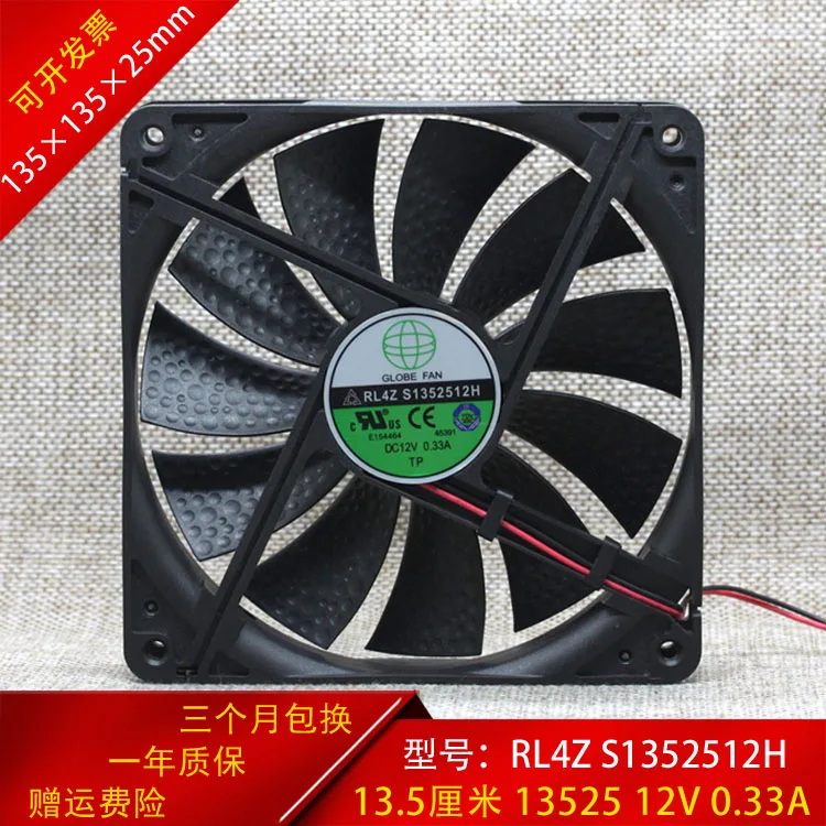 Comprar Ventilador de globo RL4Z S1352512H, 12V, 0.33A, 13,5 CM, ventilador de refrigeración de potencia del chasis, enfriador de 135x135x25mm