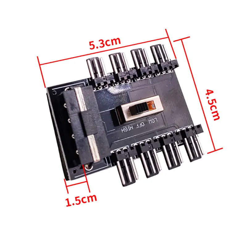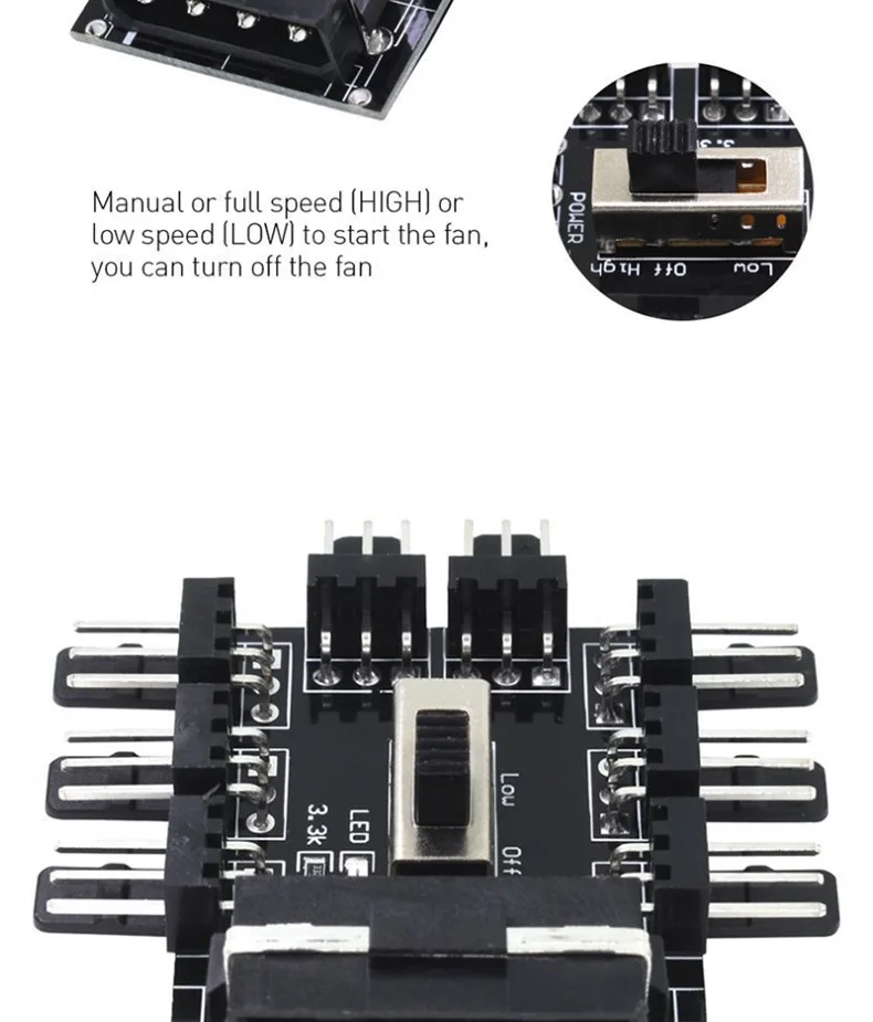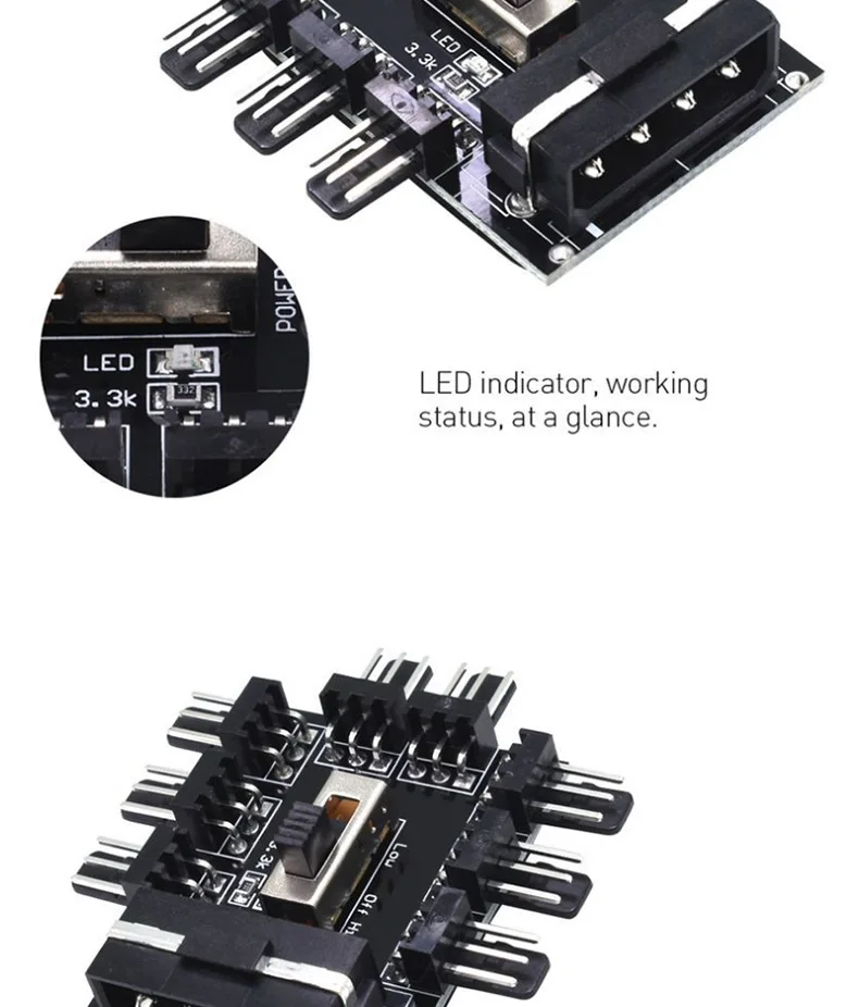 Compatible con ventilador de refrigeración de 12V y 3 pines, corriente eléctrica total de 8 vías ≤ 2A