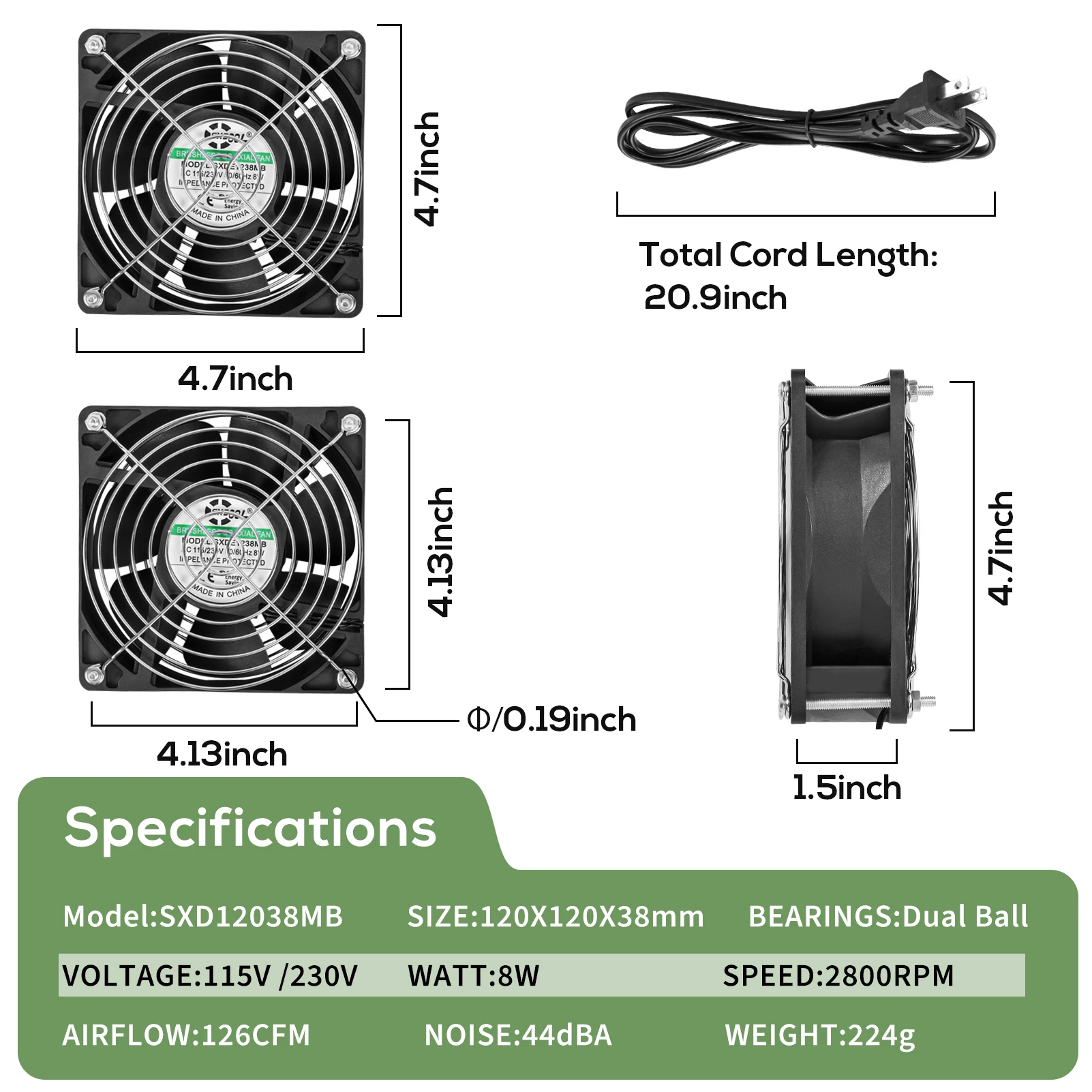 Ventilador Industrial con cable de alimentación, Enfriador de flujo de aire de alta velocidad de doble voltaje, 120mm, 12cm, CA 115V, 230V, 120x120x38mm