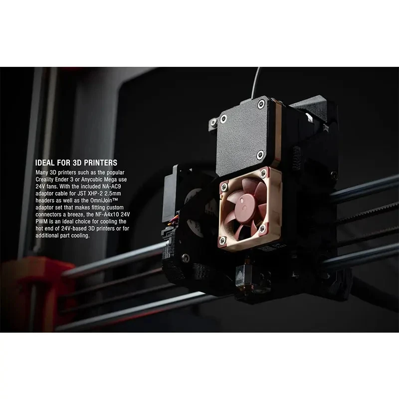 Muchas impresoras 3D, como las populares CREALITY Ender 3 o AnyCubic Mega, utilizan ventiladores de 24 V.Combine el cable adaptador NA-AC9 para JST XHP-2 2,5 mm y Omnijoin™.El NNF-A4X10 24V PWM es el extremo térmico de la impresora 3D basado en 24V o la opción ideal para otras piezas adicionales.