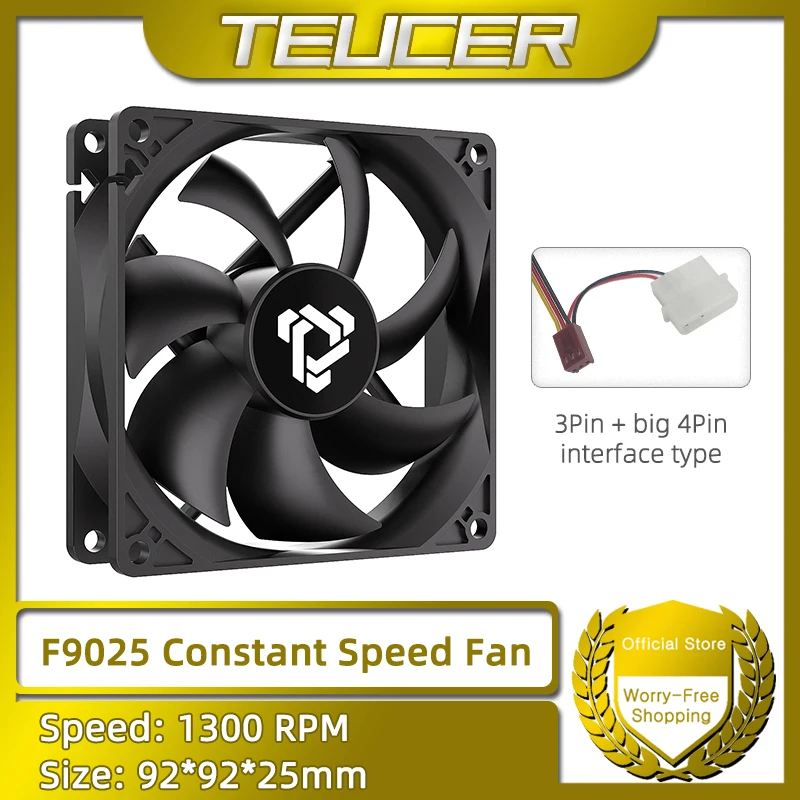 Comprar Ventilador de PC F9025 de 90mm, 1300RPM, velocidad constante, 3 pines, interfaz grande de 4 pines, adecuado para GPU, CPU, ventilador de refrigeración de fuente de alimentación de PC