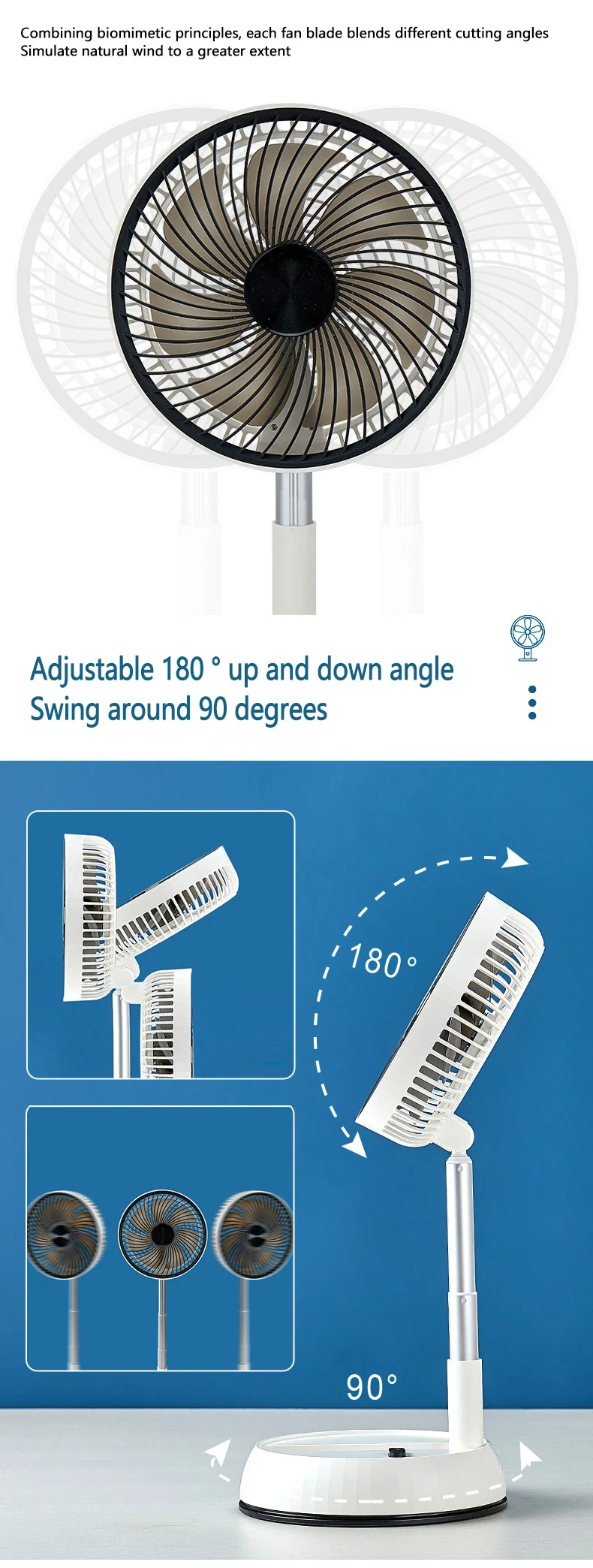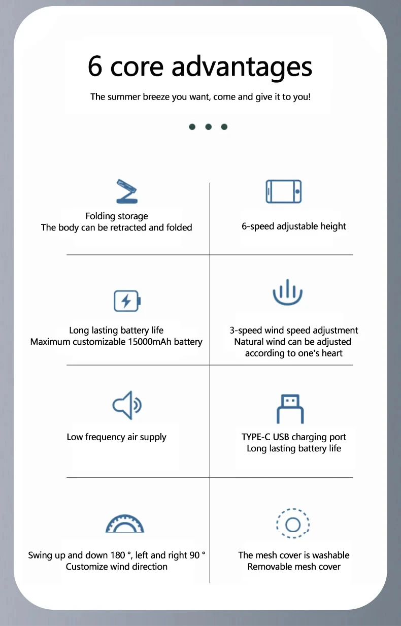 5) Motor sin escobillas de cobre mejorado y aspas de ventilador circulantes, súper silencioso, viento fuerte, viento más suave y silencioso, larga vida útil