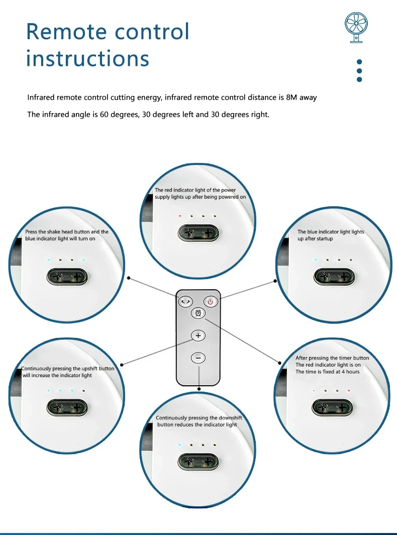La sincronización sólo se puede operar usando el control remoto. Presione el "botón de sincronización" en el control remoto y la luz indicadora en el botón de la cabeza agitadora se iluminará en verde. Solo hay un engranaje de sincronización, que se fija durante 4 horas y se puede encender o apagar.