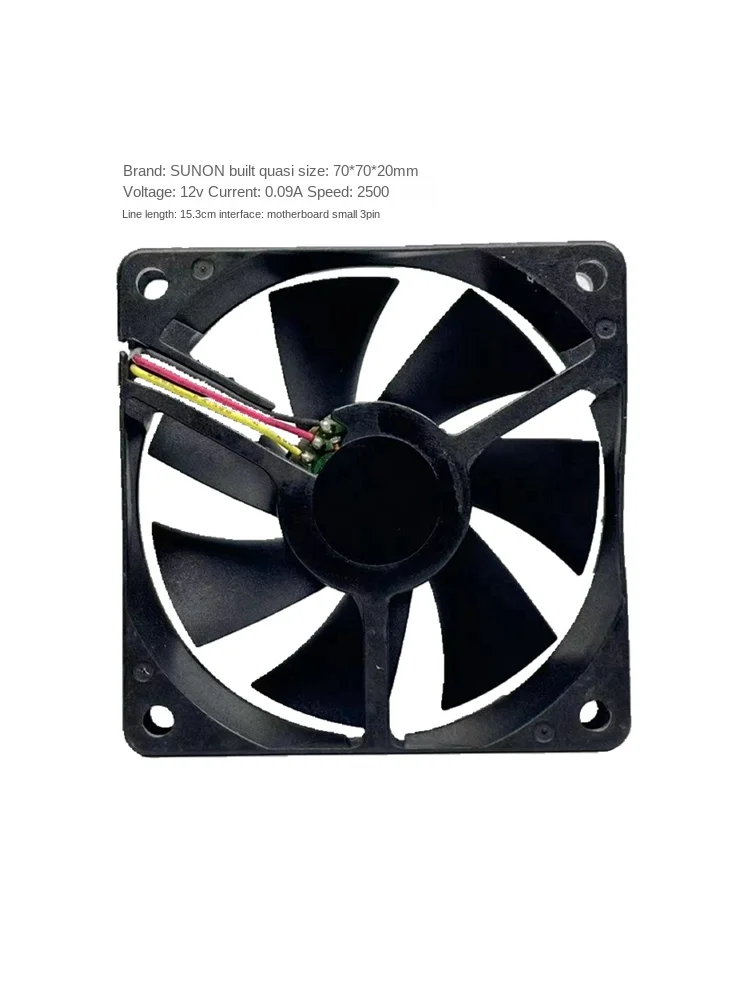 Product Description: This is an original SunonGM1207PKV3-A cooling fan, specifically designed for use in Otto-built Benq and Acer projectors. It measures 70mm x 70mm x 20mm and operates at 12V with a low current draw of 0.09A. The fan spins at 2500 RPM, providing efficient cooling to maintain optimal projector performance. It features a small 3-pin motherboard connector with a cable length of 15.3cm for easy installation. This original equipment manufacturer (OEM) fan ensures reliable cooling and quiet operation for your projector. Key Selling Points: Original Sunon Part: Ensures quality and compatibility. Specifically for Benq & Acer: Designed for seamless integration with compatible models. Quiet Operation (2500 RPM): Minimizes noise during presentations or viewing. Low Power Consumption (0.09A): Energy-efficient cooling solution. Compact 70mm Size: Fits perfectly within projector housings. Easy 3-Pin Installation: Simple connection to the projector's motherboard. Reliable Cooling: Maintains optimal projector temperature for longevity. Application Scenarios: This original Sunon projector fan is primarily used for: Benq Projector Fan Replacement: Replacing faulty or noisy fans in compatible Benq models. Acer Projector Fan Replacement: Replacing damaged fans in specified Acer projectors. Projector Maintenance and Repair: Ensuring proper cooling for projector longevity. Extending Projector Lifespan: Preventing overheating which can damage projector components. DIY Projector Repair: Replacing fans for home or professional projector systems. Embedded Industrial Cooling Fan Keywords: projector fan, cooling fan, DC fan, 70mm fan, 12V fan, low noise fan, Sunon fan, original fan, replacement fan, Benq fan, Acer fan, equipment cooling, electronic cooling, small fan, built-in fan.