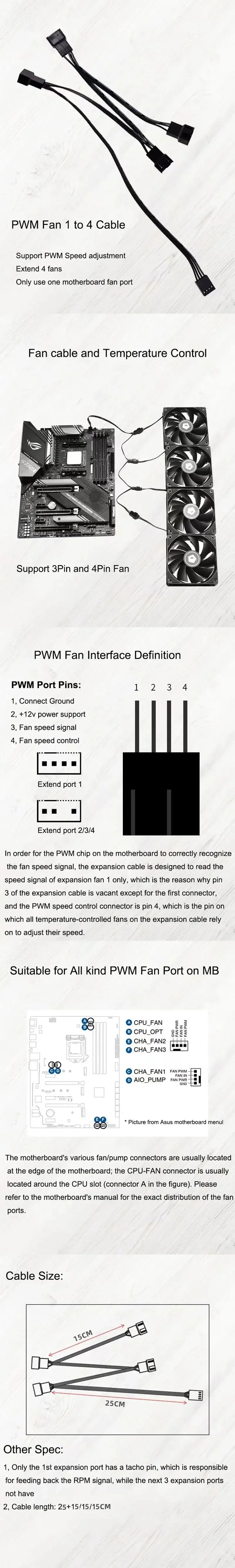 * Cable de extensión de alimentación PWM de 4 vías con ventilador de 4 pines.