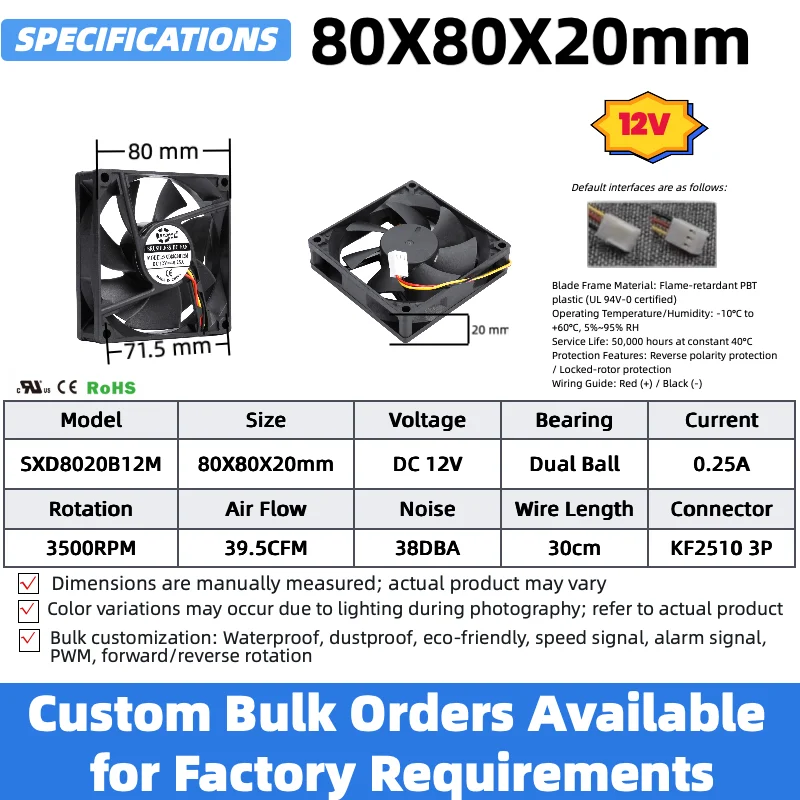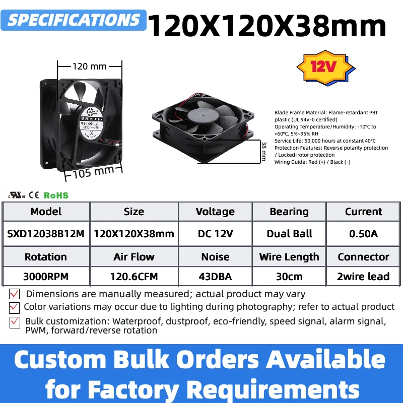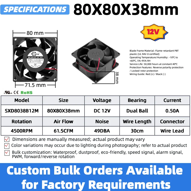 Comprar Ventilador de refrigeración de 12V CC 4/5/6/7/8/9/12cm 80mm 120mm rodamiento de bolas doble, ventilador de caja Industrial para refrigeración electrónica de gabinete de PC de servidor