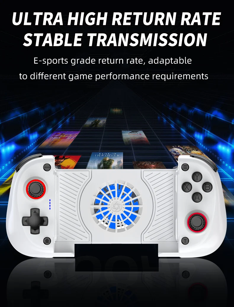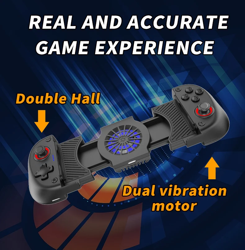 Ventilador de refrigeración 2 en 1, Gamepad de estiramiento X3 para multiplataforma con doble salón, motores de vibración Dual y Chip Bluetooth de inteligencia