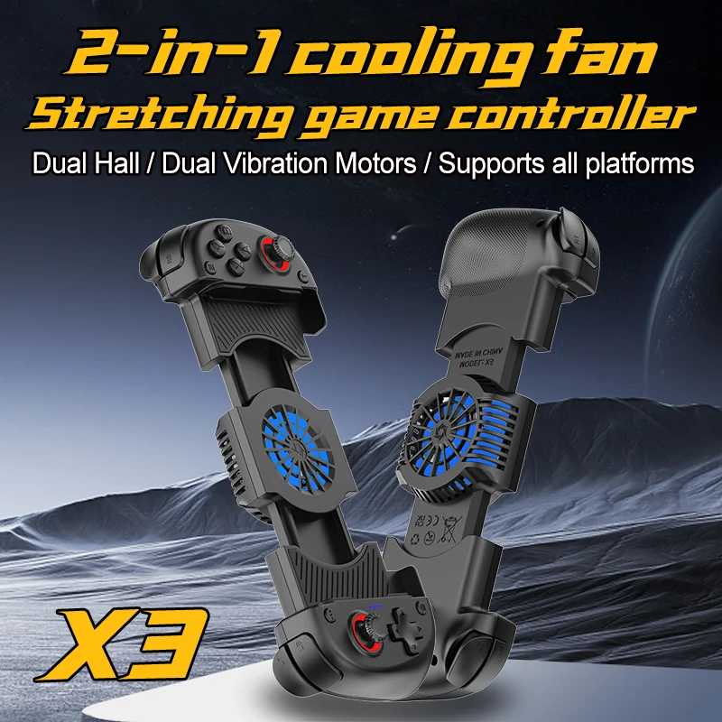 Comprar Ventilador de refrigeración 2 en 1, Gamepad de estiramiento X3 para multiplataforma con doble salón, motores de vibración Dual y Chip Bluetooth de inteligencia
