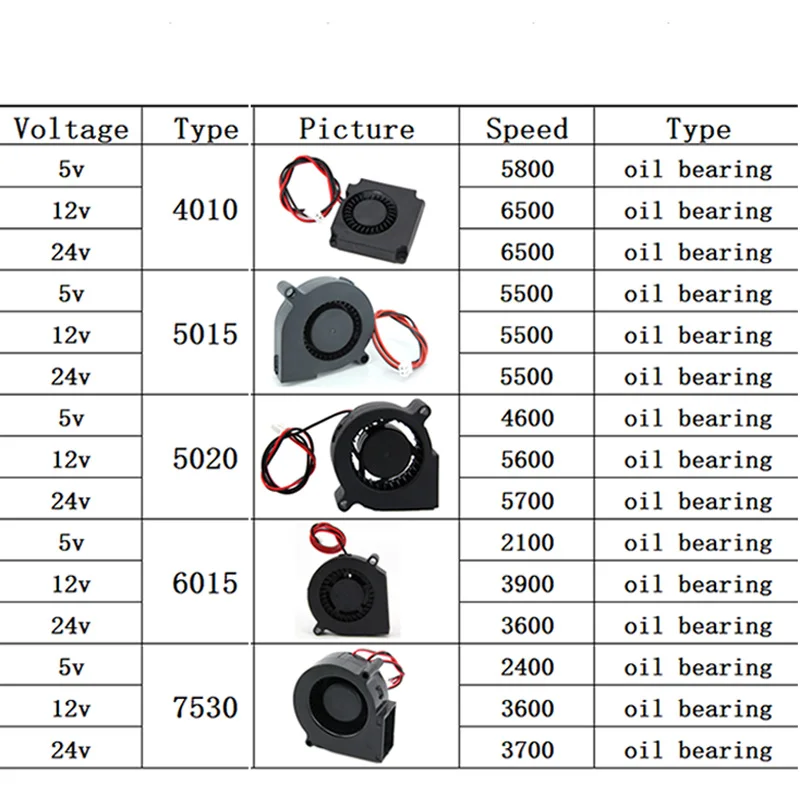 Ventilador de refrigeración 4010 5015mm 5020 6015 7530 con 2 pines XPH2.54 Cable DC 5V 12V 24V Múltiples opciones para ventiladores de refrigeración de impresoras 3D