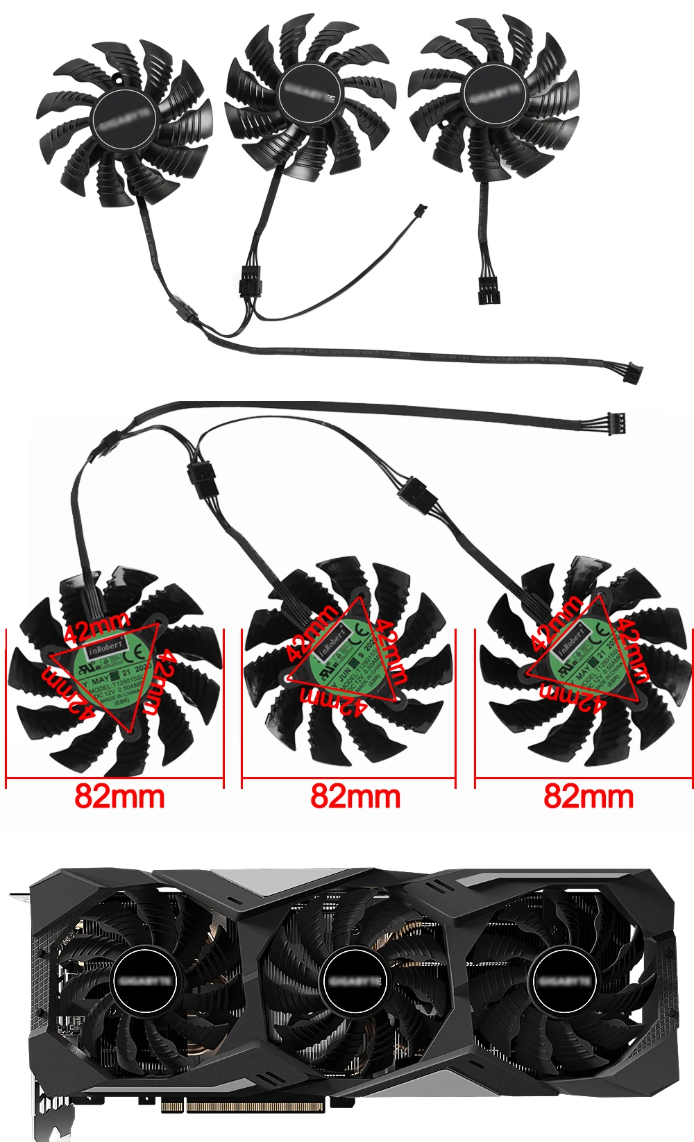 Comprar Ventilador de refrigeración de 82MM para Gigabyte GeForce RTX 2070, 2080, SUPER RTX 2080Ti, tarjeta gráfica de vídeo, T128015SU, PLA09215S12H, nuevo