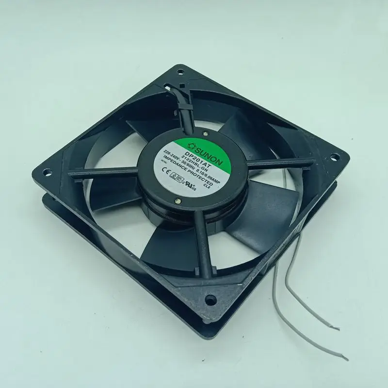 Marca: Sunon Modelo: dp201at 2122hbl. gn Todos los cables de cobre, núcleo de 0,13 MM de espesor. Especificación: 120*120*25 MM Momento del agujero: 105*105mm Voltaje: 220V Actual: 0.10a Estructura: carcasa de metal, cuchilla de ventilador de moldeo por inyección de una sola vez