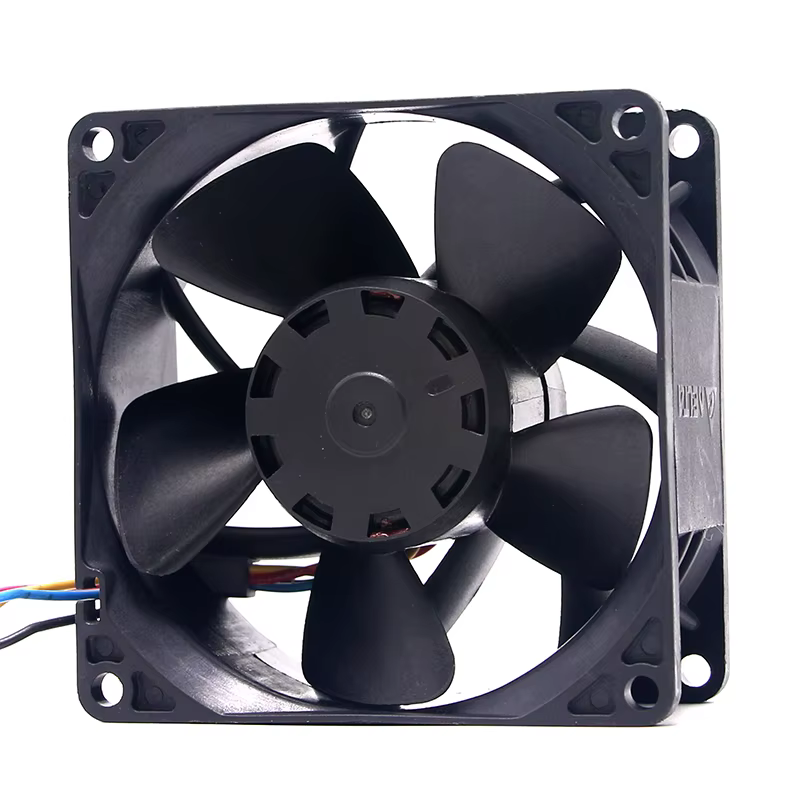 Product Description: The QFR0812UHE is a high-performance 80mm cooling fan designed for optimal cooling in demanding applications. Featuring a dual ball bearing system and a 9000 RPM speed, it delivers an impressive airflow of 105.21 CFM, ideal for cooling CPUs and chassis. With a rated voltage of 12V and a current of 2.5A, this fan offers powerful, consistent airflow for reliable performance. The 4-pin connector allows for easy integration with motherboards, making it perfect for gaming PCs, servers, and other high-performance systems. Key Selling Points: High-Speed Cooling: 9000 RPM provides powerful airflow of 105.21 CFM for effective heat dissipation. Durable Design: Dual ball bearing system ensures long-lasting performance and reliability. Wide Compatibility: 4-pin standard plug connects easily to motherboards for efficient CPU and chassis cooling. High Performance: Rated current of 2.5A offers optimal cooling for heavy-duty systems. Applications: CPU cooling in high-performance gaming PCs Chassis cooling for servers and industrial machines Cooling for electronics and power-hungry devices Suitable for use in overclocked systems and heavy-duty computing environments