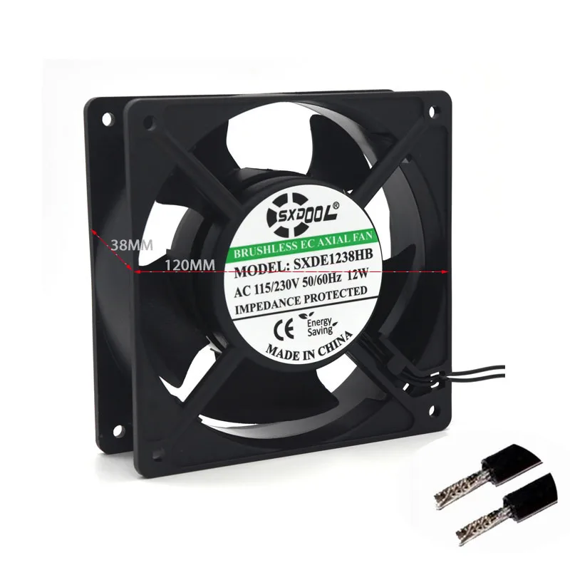 Ventilador de refrigeración para armarios de CA, 115V, 230V, 120mm, 120x120x38mm, motor EC de doble rodamiento de bolas, flujo de aire potente, 12W, 3500RPM