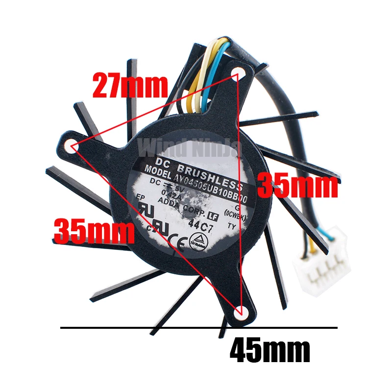 Comprar Ventilador de refrigeración AY04505UB10BB00 para máquina todo en uno de tarjeta gráfica, espaciado de agujeros de 45mm de diámetro, 35x35x27mm, DC5V, 0.42A, 4 pines