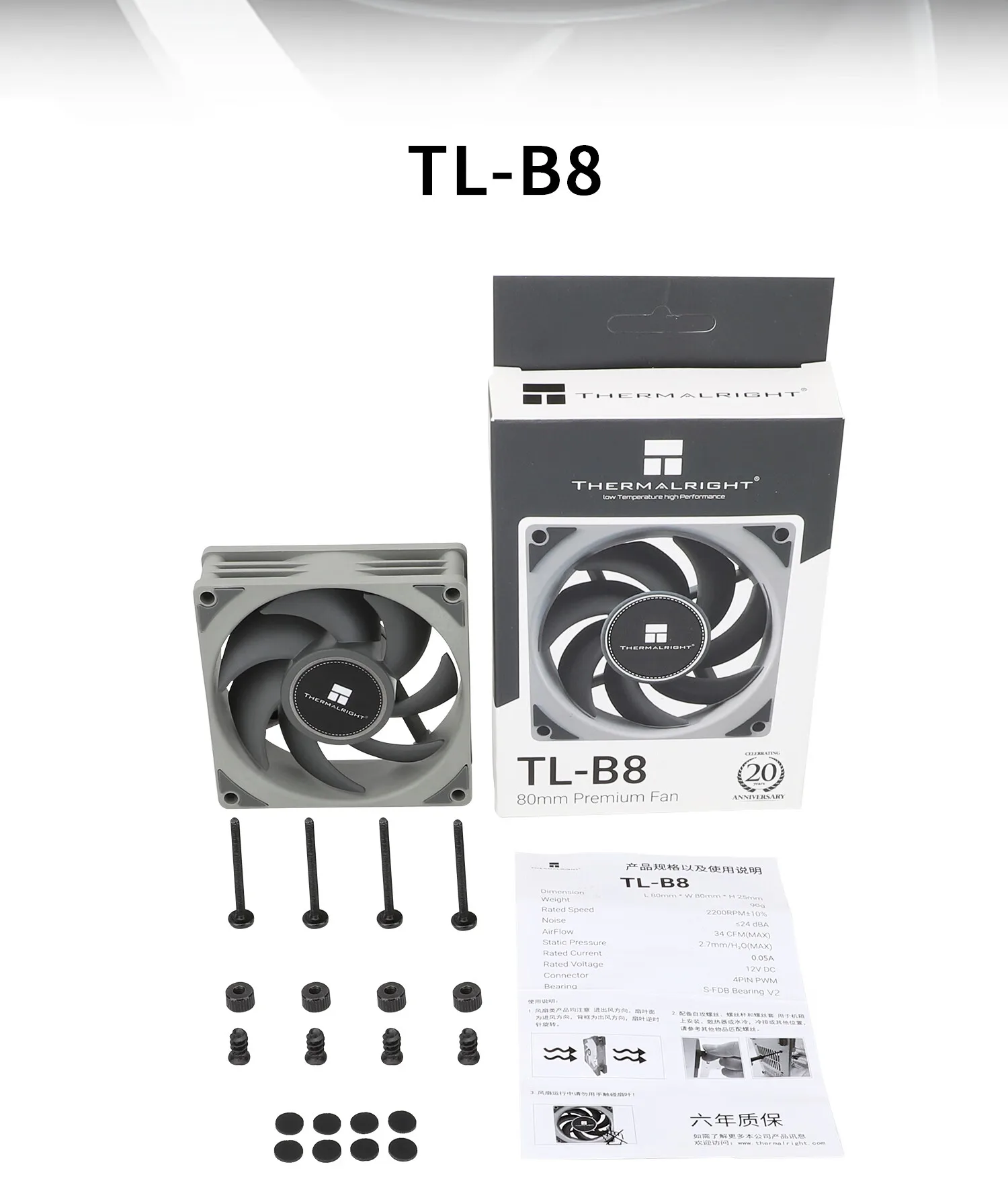 Ventilador de refrigeración de caja Thermalright TL-B8 80X80X25mm 2200 rpm 4 pines PWM ventilador de alto rendimiento