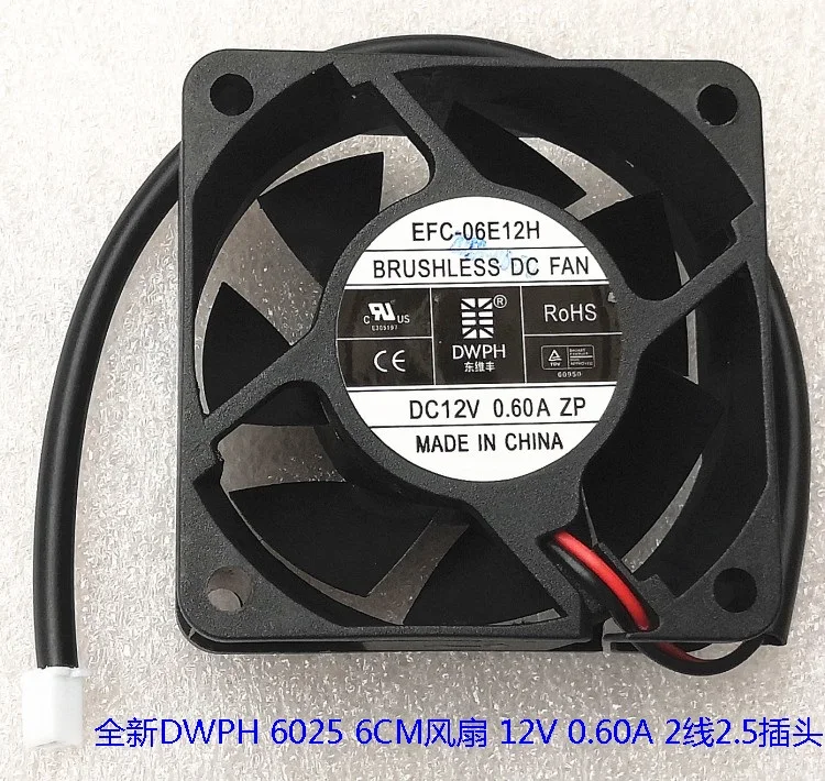 Comprar Ventilador de refrigeración para coche, dispositivo Original de 2 cables, enchufe 6025, 12V, 0.6A, para DWPH 2,5, 60mm, 6CM, nuevo, EFC-06E12H