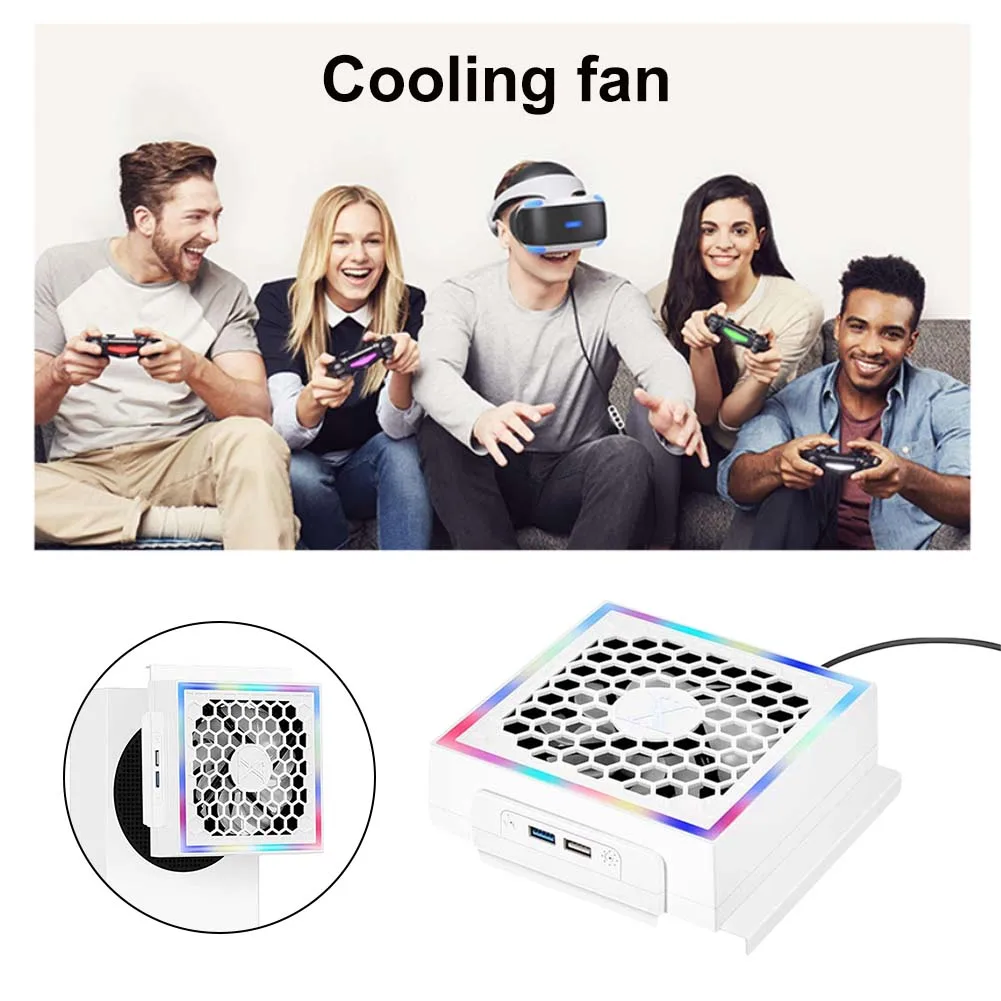 Comprar Ventilador de refrigeración de consola de juegos para Xbox Series S, cubierta superior a prueba de polvo, sistema de refrigeración de ventilador ajustable de 3 velocidades, 2 USB, luz de respiración RGB