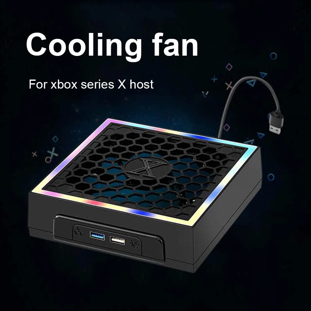 Comprar Ventilador de refrigeración para consola de juegos Xbox Series X, cubierta superior a prueba de polvo, sistema de refrigeración de ventilador ajustable de 3 velocidades, luz de respiración RGB, 2 USB