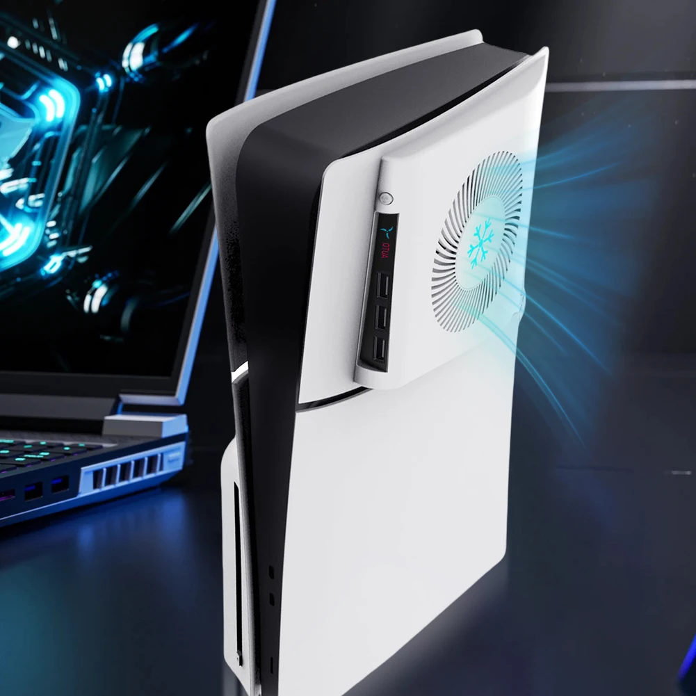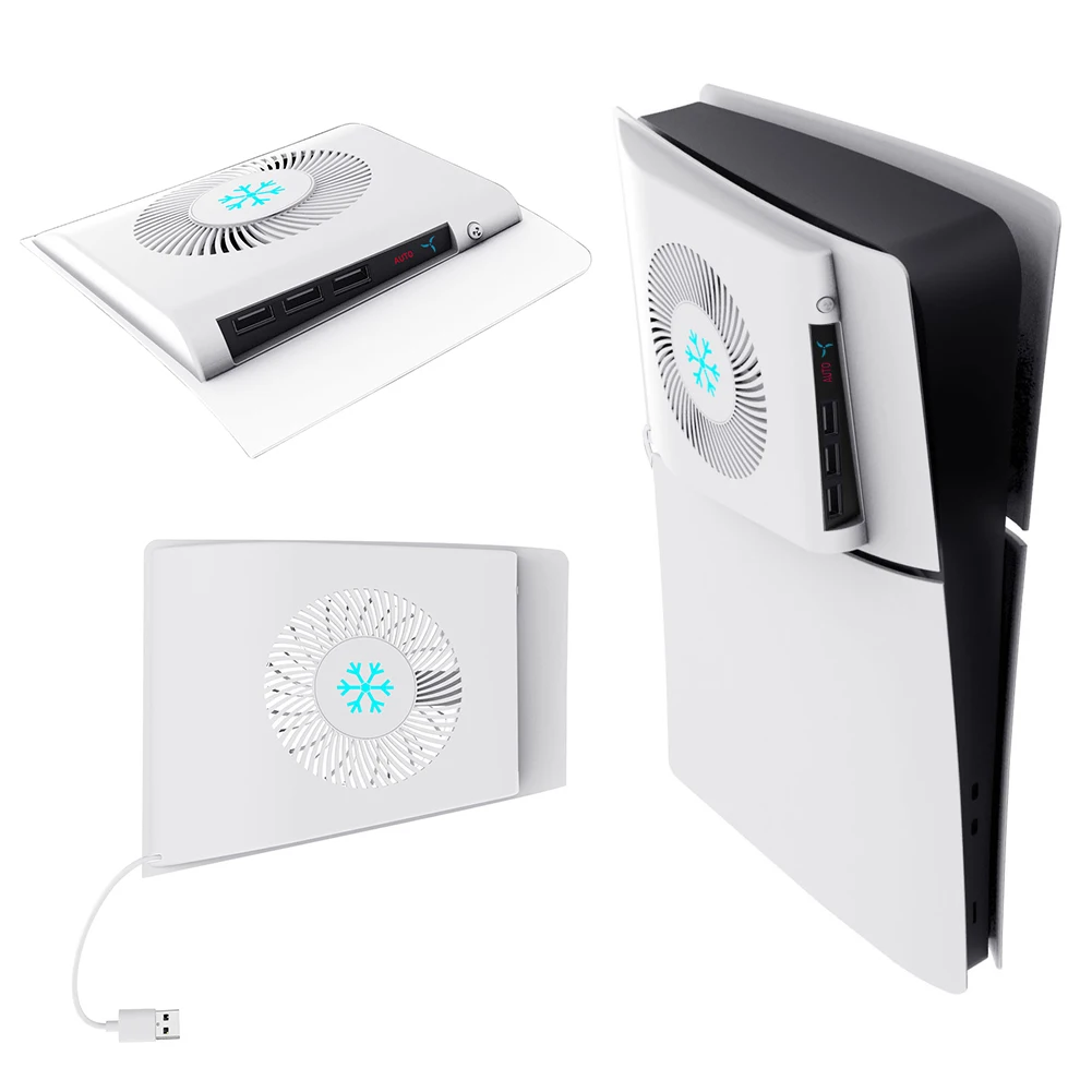 Compatible conVentilador de refrigeración para consola delgada PS5, ventilador de refrigeración montado lateral con 3 puertos USB 2.0, consola, refrigerador silencioso, Control de temperatura lateral, ventilador de refrigeración, cubierta facialCompatible conAccesorios delgados Playstation 5