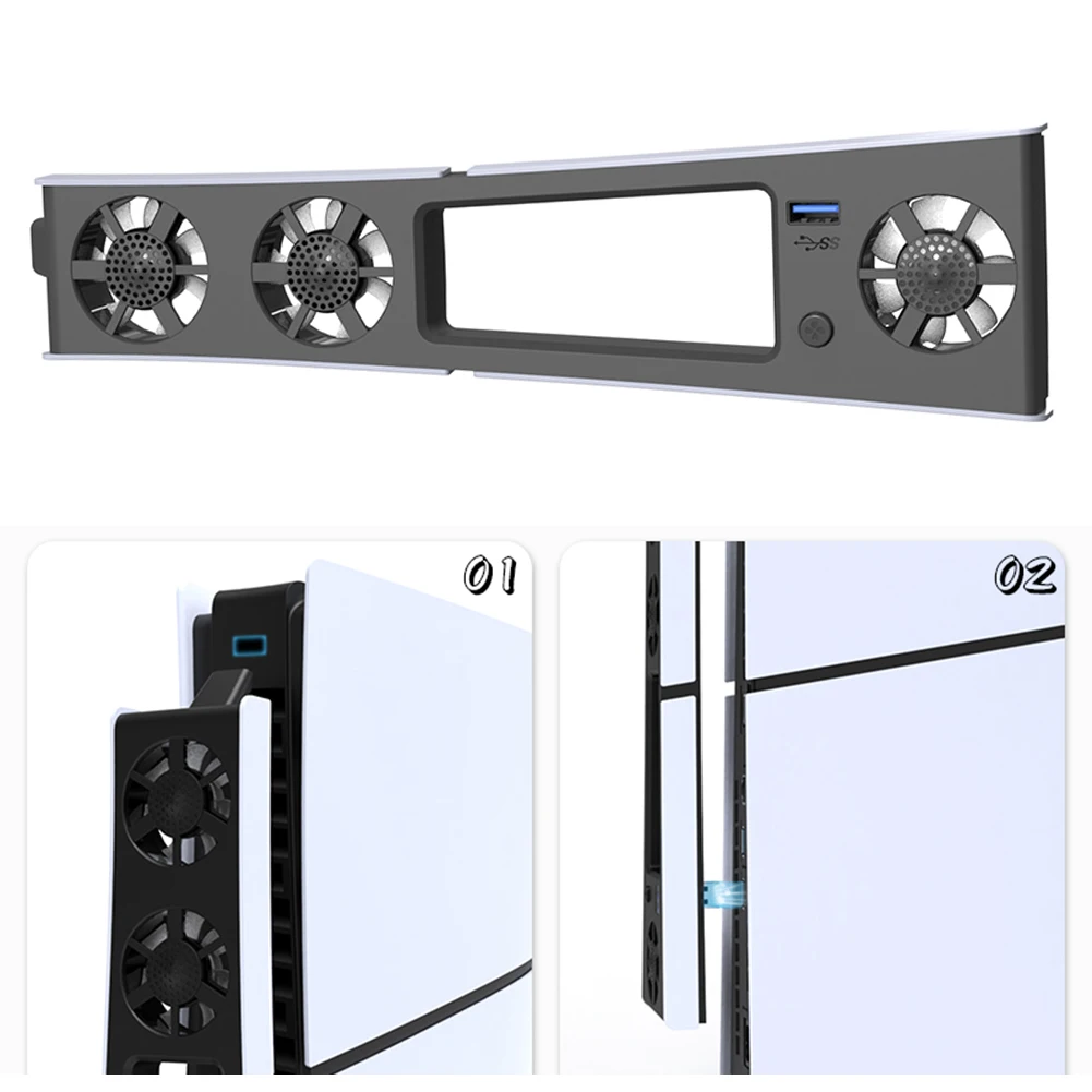 Comprar Ventilador de refrigeración para consola PS5 Slim, sistema de refrigeración silencioso con luces LED, USB 3,0, para Playstation 5 Slim