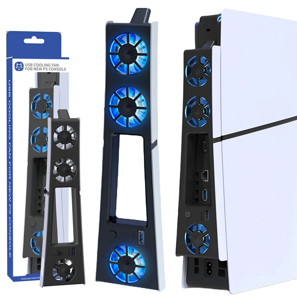 Comprar Ventilador de refrigeración para consola PS5 Slim, sistema de refrigeración silencioso con luces LED, USB 3,0, para Playstation 5 Slim