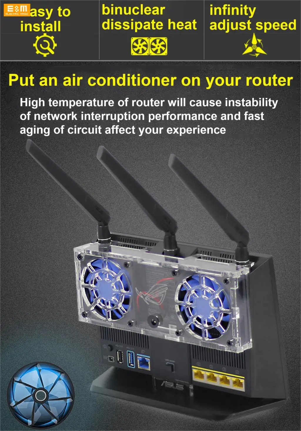 Comprar Ventilador de refrigeración con Control de temperatura, radiador de calor con alimentación USB, disipación Ultra silenciosa, pantalla antipolvo para enrutador de RT-AX86U
