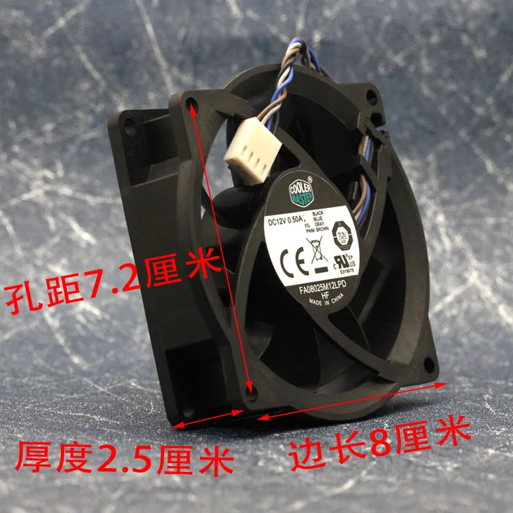 Comprar Ventilador de refrigeración para CoolerMaster FA08025M12LPD, 12V, 0.50A, 804057-001, 80x80x25mm, 4 pines, procesador, disipador térmico
