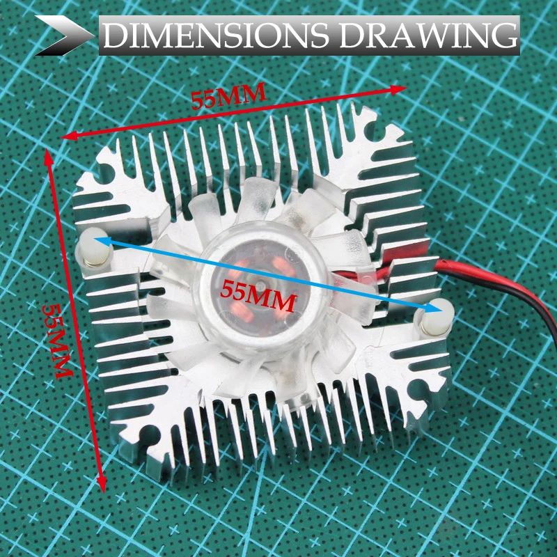 1 ventilador disipador térmico de 55mm (1 disipador térmico de 55mm + 1 ventilador de refrigeración de 12mm).