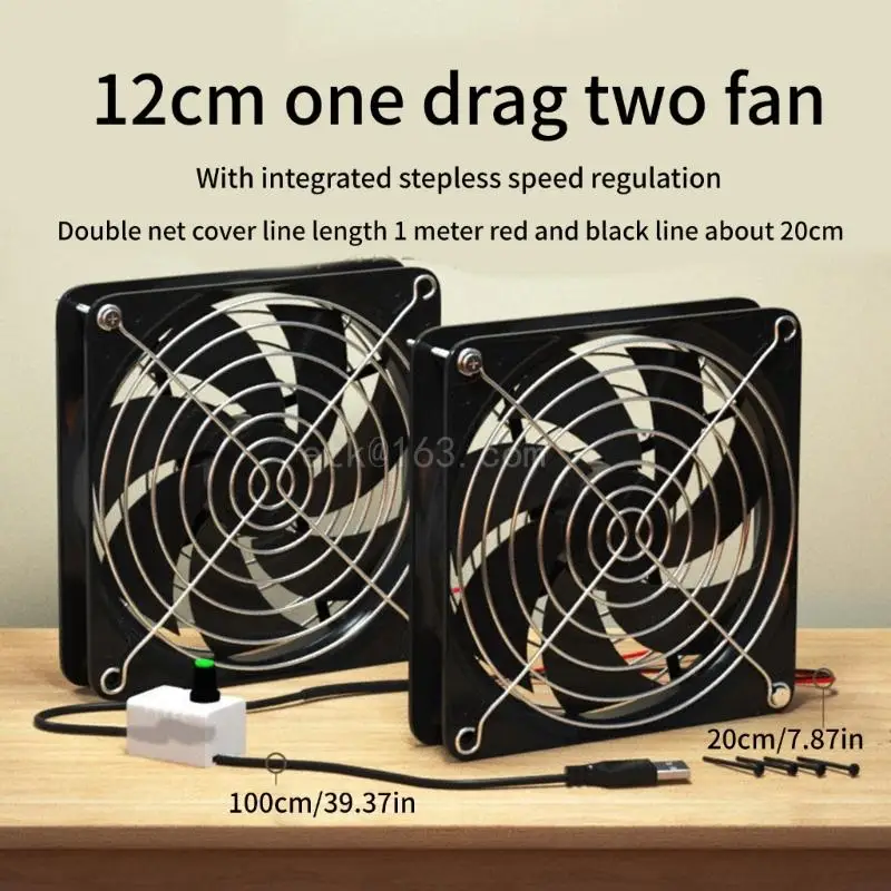 Manténgase fresco y cómodo con nuestro ventilador USB de 12cm que le permite ajustar la velocidad del ventilador según sus preferencias.