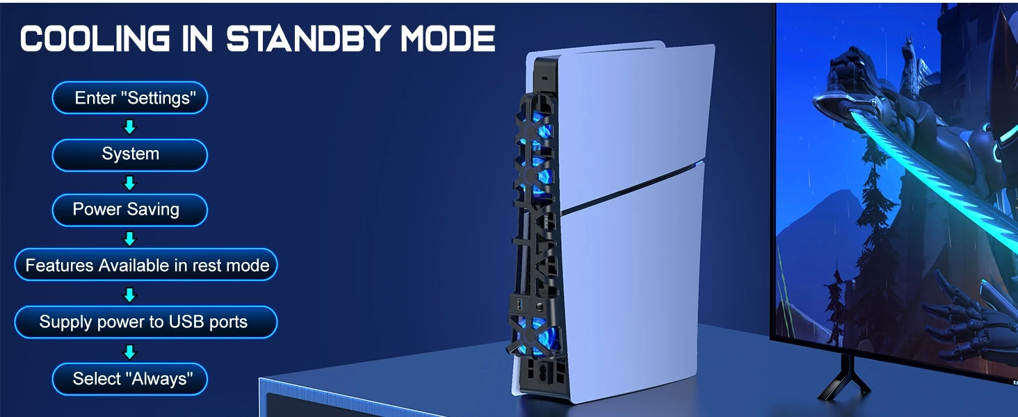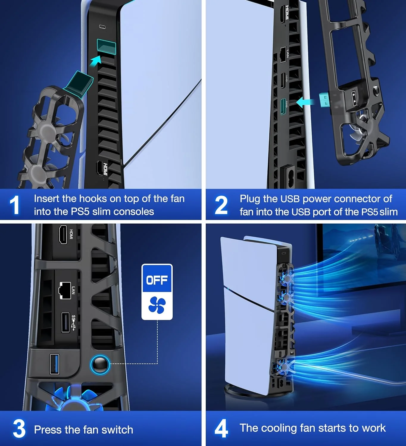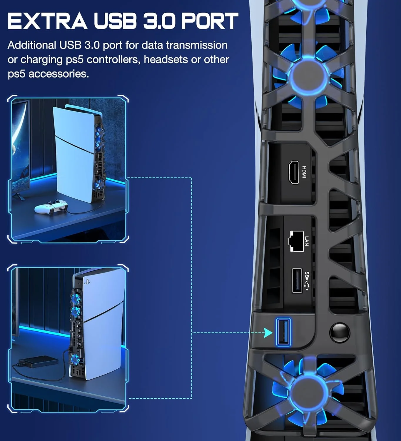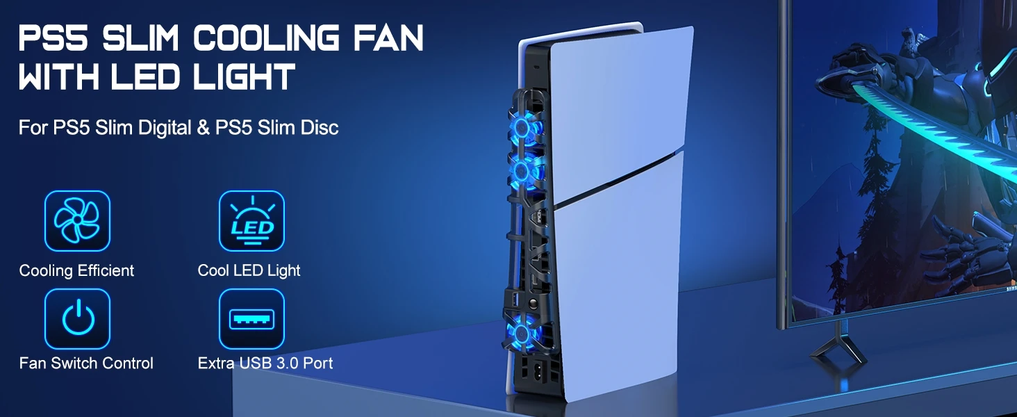 Comprar Ventilador de refrigeración externo para consola de juegos PlayStation 5 Slim, sistema de refrigeración eficiente, puerto USB, ventilador silencioso para PS5 Slim, accesorios