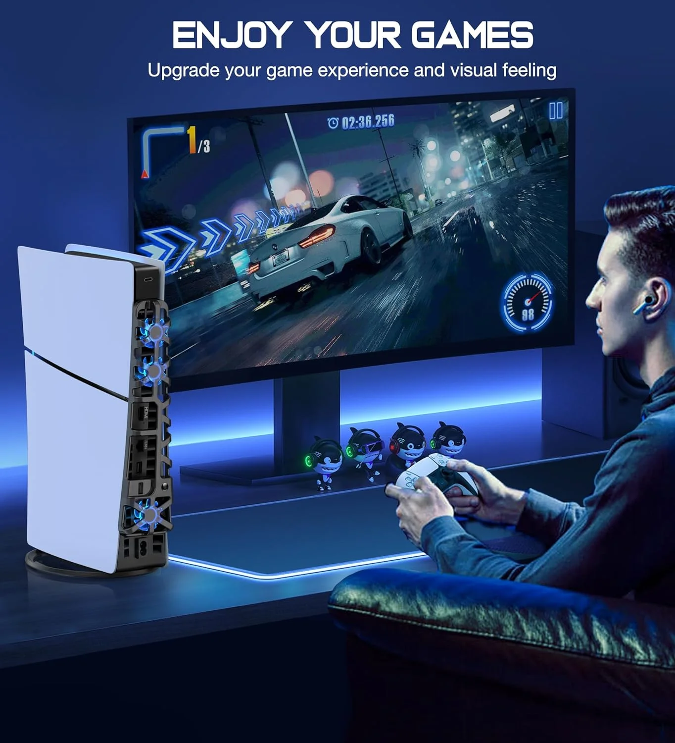 ✅【Ventilador de refrigeración PS5 con luz LED 】El ventilador de refrigeración ps5 viene con luz LED azul fría que combina perfectamente con el sistema ps5, haciéndolo más inmersivo y teniendo una mejor experiencia de juego. Y el brillo de la luz azul brillante cambia dependiendo de la velocidad del ventilador. El ventilador delgado de la ps5 es compacto, elegante y ahorra espacio, lo que combina con la consola delgada como si perteneciera allí. Este ventilador enfriador de accesorios ps5 es un regalo práctico para jugadores de ps5.