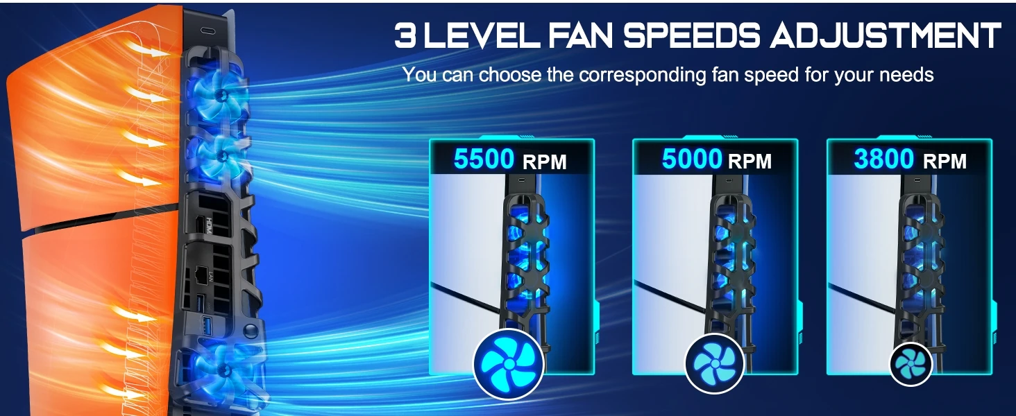 ✅【Ventilador de refrigeración Delgado PS5 de 5500RPM 】El ventilador de refrigeración Delgado ps5 tiene tres velocidades de ventilador altas: normal/media/fuerte. El enfriador de ps5 puede estar directamente en la salida de aire de la consola para ayudar a disipar rápidamente el calor creado por la consola, de modo que su consola ps5 Slim se mantenga fresca y funcionando con un rendimiento óptimo. El ventilador ps5 tiene una función de memoria, mantendrá la última configuración de velocidad del ventilador cuando encienda la ps5 nuevamente. Es la opción de regalo perfecta para los jugadores de ps5 que necesitan el eficiente sistema de refrigeración de ps5.