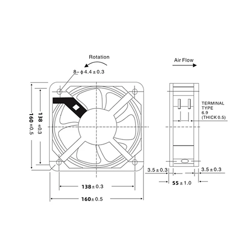 Ventilador de refrigeración de flujo Axial de Metal UHS4556, 120mm/16cm, 120x120x38mm/160x160x55mm, convertidor de frecuencia AC220V/230V, ventilador de 160mm para Dis de calor