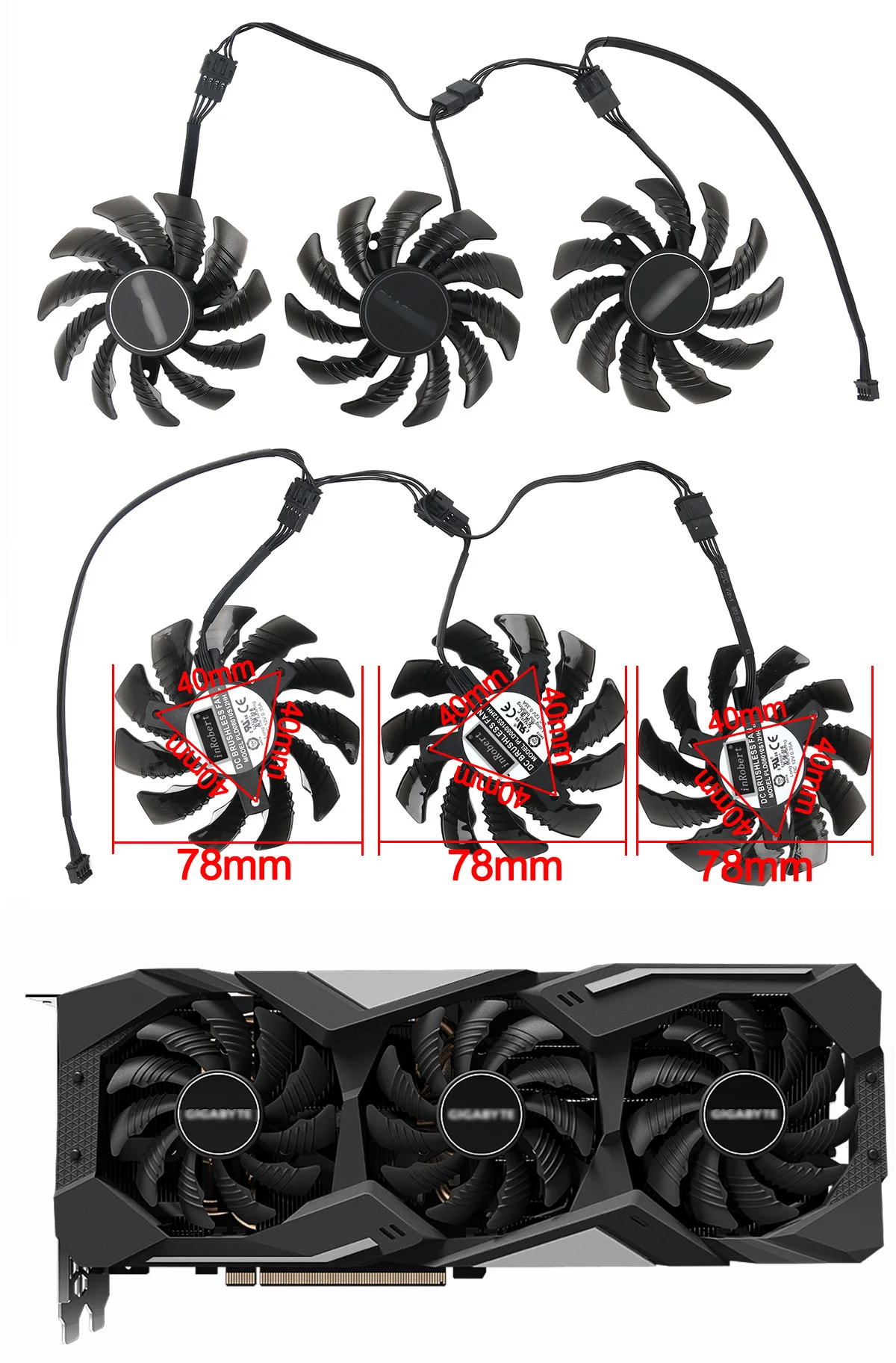 New 78MM PLD08010S12HH Cooler Fan Replacement For Gigabyte Radeon RX 5500 5600 5700 XT Graphics Video Card Cooling T128010SU