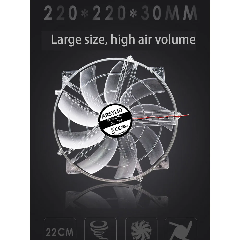 Comprar Ventilador de refrigeración grande de 22cm, enfriador silencioso de gran volumen de aire, marco transparente de 220mm, 220x220x30mm