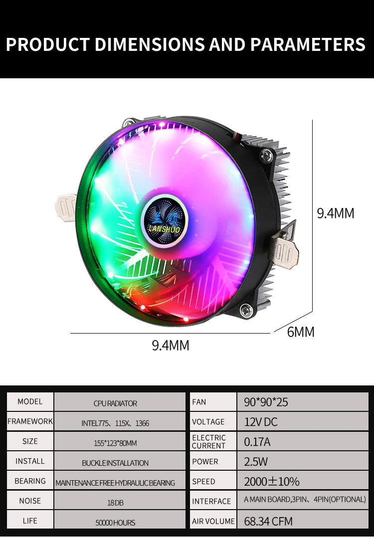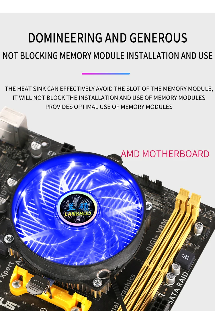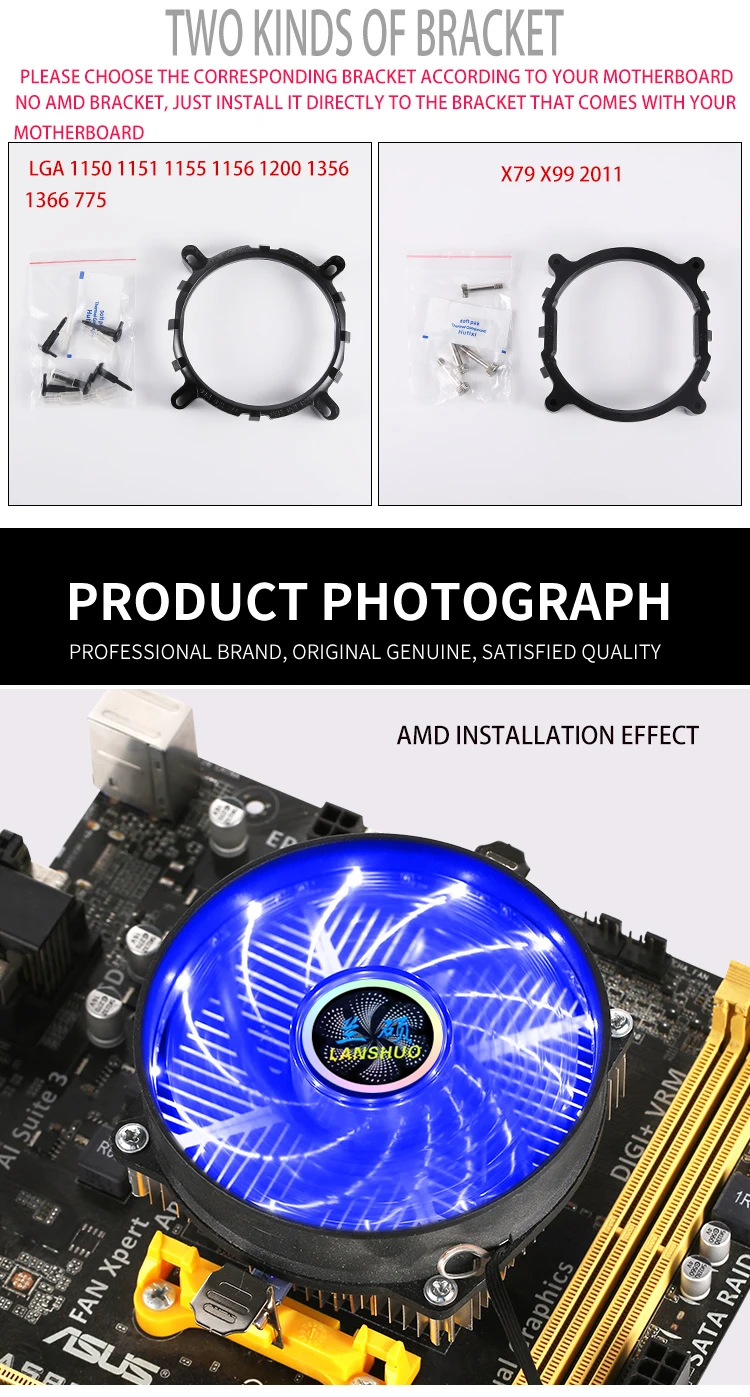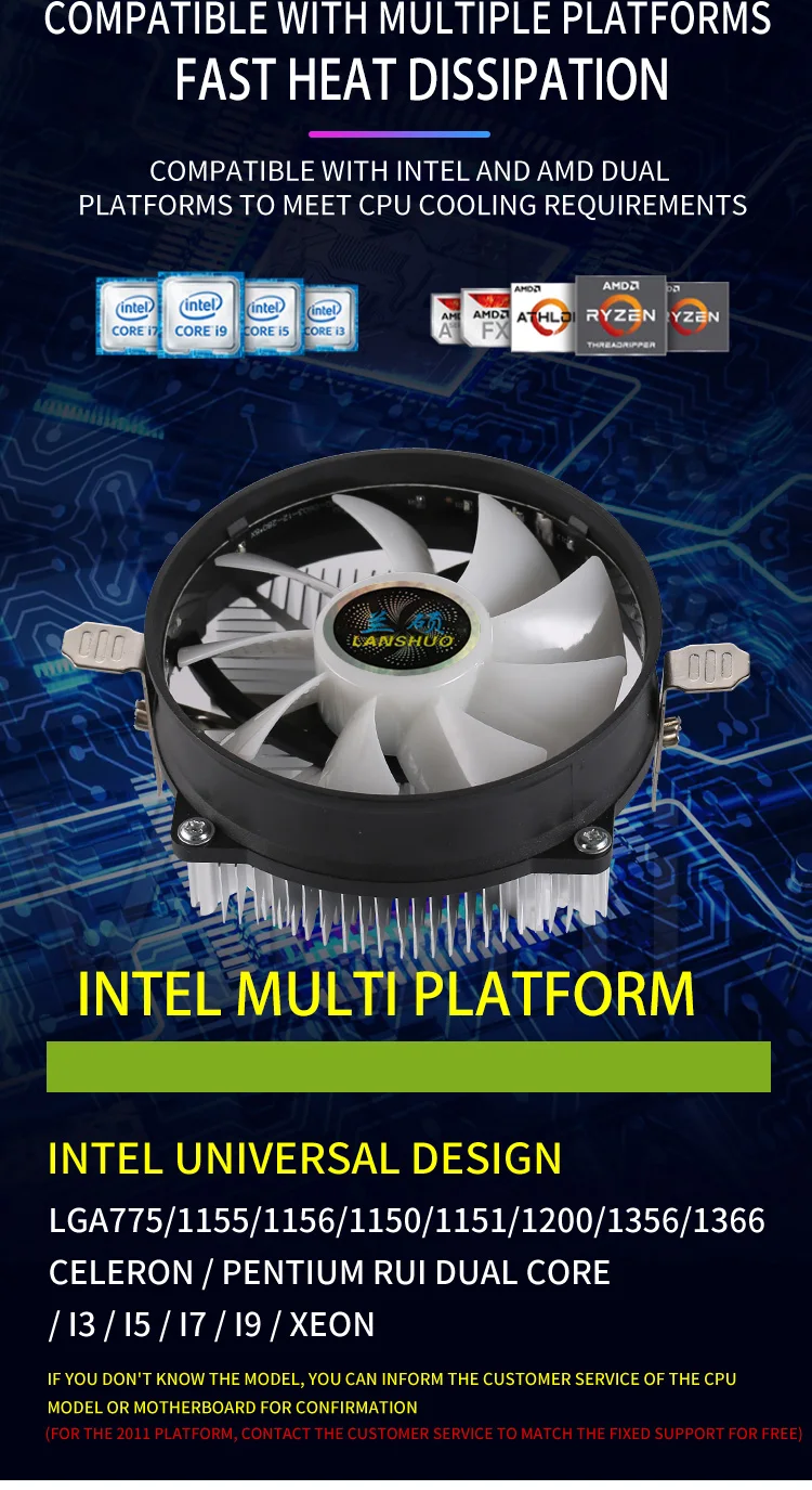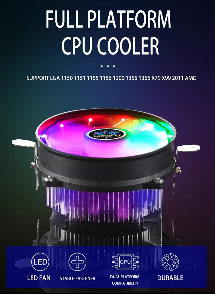 Comprar Ventilador de refrigeración LED para CPU, disipador térmico, radiador para LAG1150, 1155, 1156, 775, 1200, 1356, AMD AM3, AM4, X79, X99, 1366