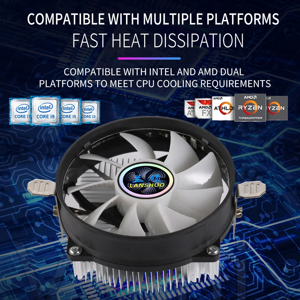 Comprar Ventilador de refrigeración LED para CPU, disipador térmico, radiador para LAG1150, 1155, 1156, 775, 1200, 1356, AMD AM3, AM4, X79, X99, 1366