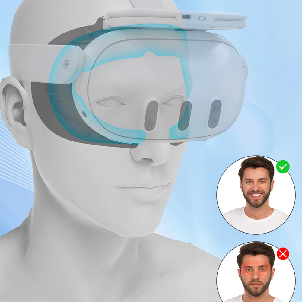 3. Cubierta facial cómoda y reemplazable:Mejora la experiencia de Quest 3 con la almohadilla facial con doble ventilador de refrigeración. Los materiales suaves y refrescantes ofrecen un toque suave, mientras que La esponja absorbente Mantiene la visibilidad prístina. Diseñado para adaptarse cómodamente y de forma segura, esta cubierta facial mejora sus sesiones de realidad virtual al reducir la presión y aumentar el disfrute.