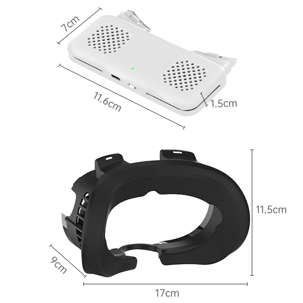 Característica:1. Eficiente disipación del calor y antivaho:Mantenga su juego nítido con nuestro ventilador de enfriamiento de la cubierta facial para Quest 3, con innovadoras aberturas de estilo de matriz para una mejor circulación del aire. Manténgase fresco y evite el empañamiento de la lente con el ventilador centrífugo turbo que ofrece un alto flujo de aire a un bajo nivel de ruido.