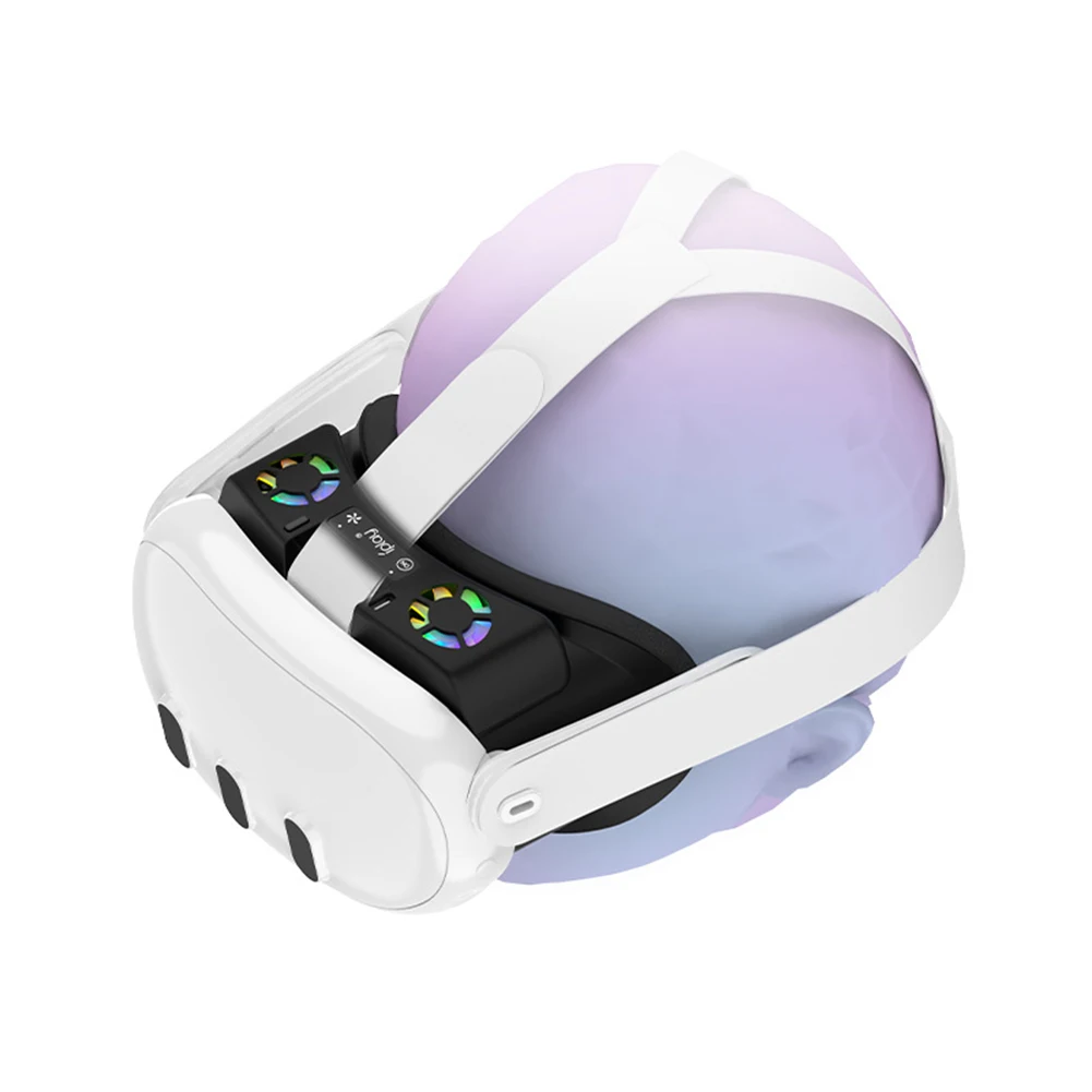 1. Atmósfera elegante:Con sus luces degradadas RGB, la cubierta facial con ventilador de refrigeración agrega un toque de sofisticación y crea una atmósfera visualmente impresionante cuando se usa como compatible con las gafas Meta Quest 3.