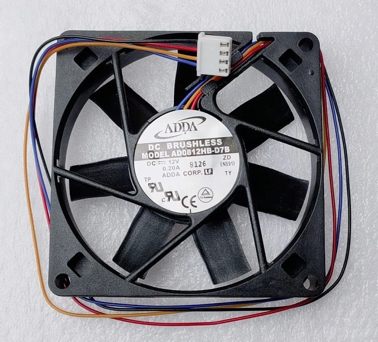 Comprar Ventilador de refrigeración de ordenador, dispositivo con rodamiento de bolas Dual de 80mm, CC de 12V, 0.20A, 80x80x15mm, 4 cables, para enfriador de decodificador de vídeo Dahua, nuevo, AD0812HB-D7B