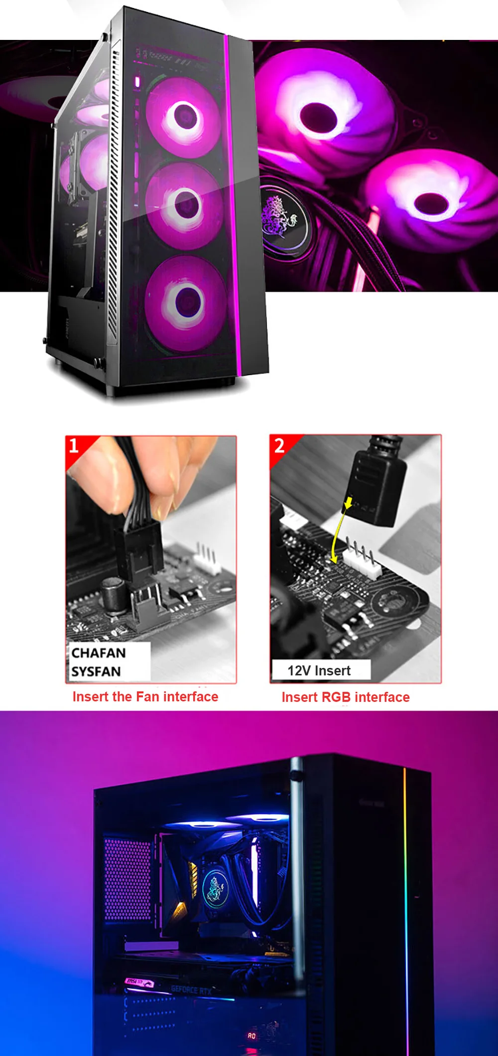 Comprar Ventilador de refrigeración para ordenador de escritorio, 12cm, 12V, RGB, 4 pines, Control de temperatura, linterna sincronizada, efecto de luz, enfriador