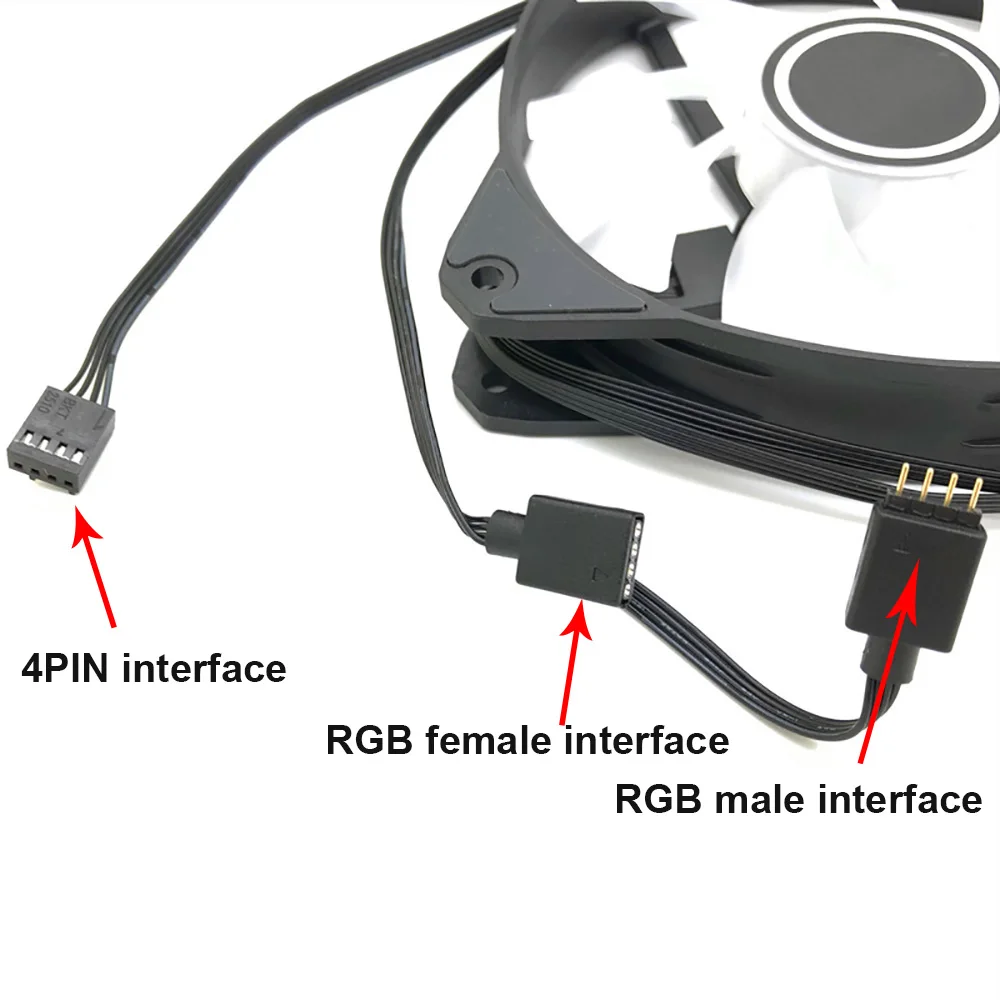 Ventilador de refrigeración 12cm 12V RGB 4Pin Caja de computadora de escritorio Control de temperatura Linterna Efecto de luz sincronizada