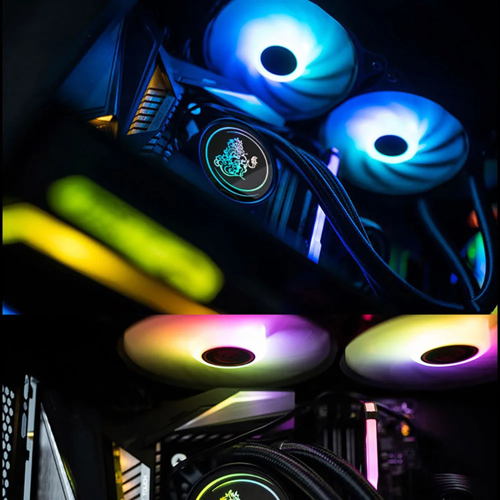 Comprar Ventilador de refrigeración para ordenador de escritorio, 12cm, 12V, RGB, 4 pines, Control de temperatura, linterna sincronizada, efecto de luz, enfriador