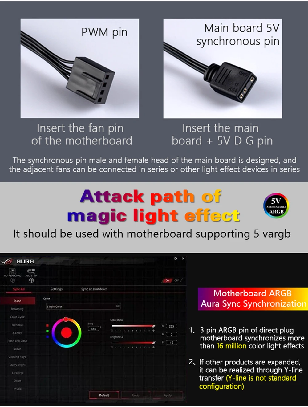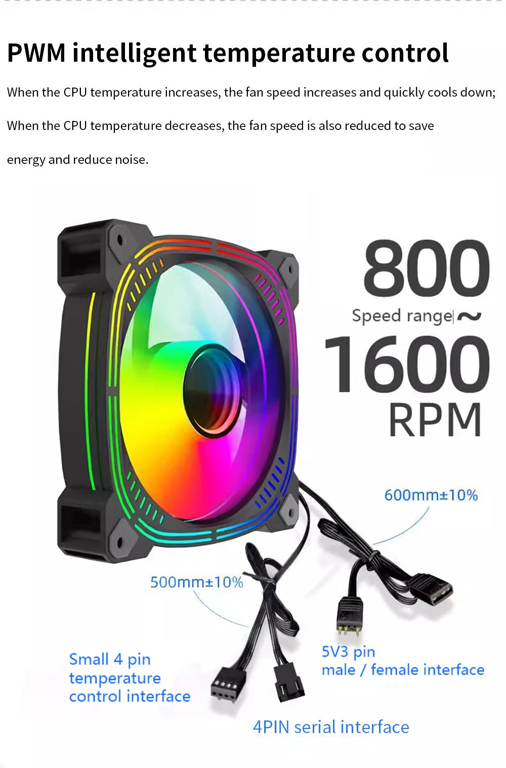 Ventiladores 120mm RGB Cooler para PC Case Fan Heatsink PWM 4PIN CPU Cooling Fan 3pin5v RGB Fan PC Controller Case Radiador 12V ARGB Fan