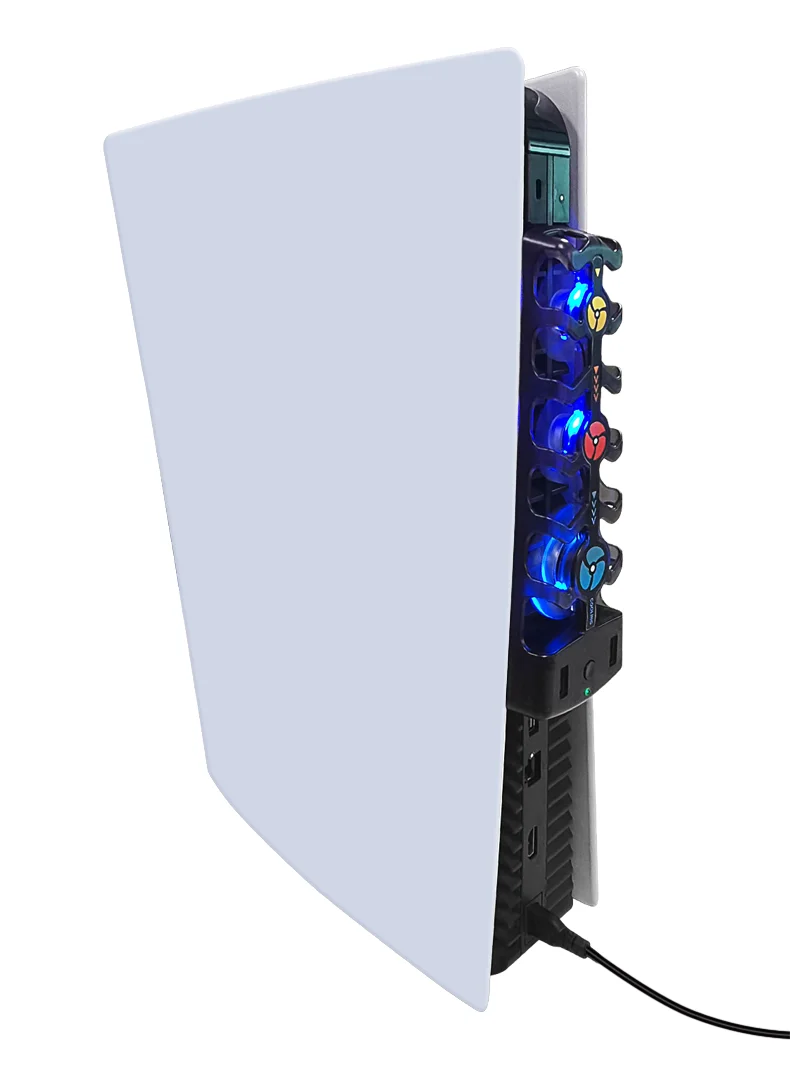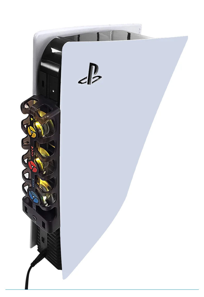 Este sistema de refrigeración PS5 utiliza aspas de ventilador mejoradas, lo que le permite disipar el calor de manera efectiva mientras mantiene un bajo nivel de ruido y no interrumpirá el juego incluso a máxima velocidad.El ventilador de refrigeración del ventilador Playstation 5 también tiene dos puertos USB adicionales en la parte inferior, que se pueden usar para cargar el controlador o transferir datos.