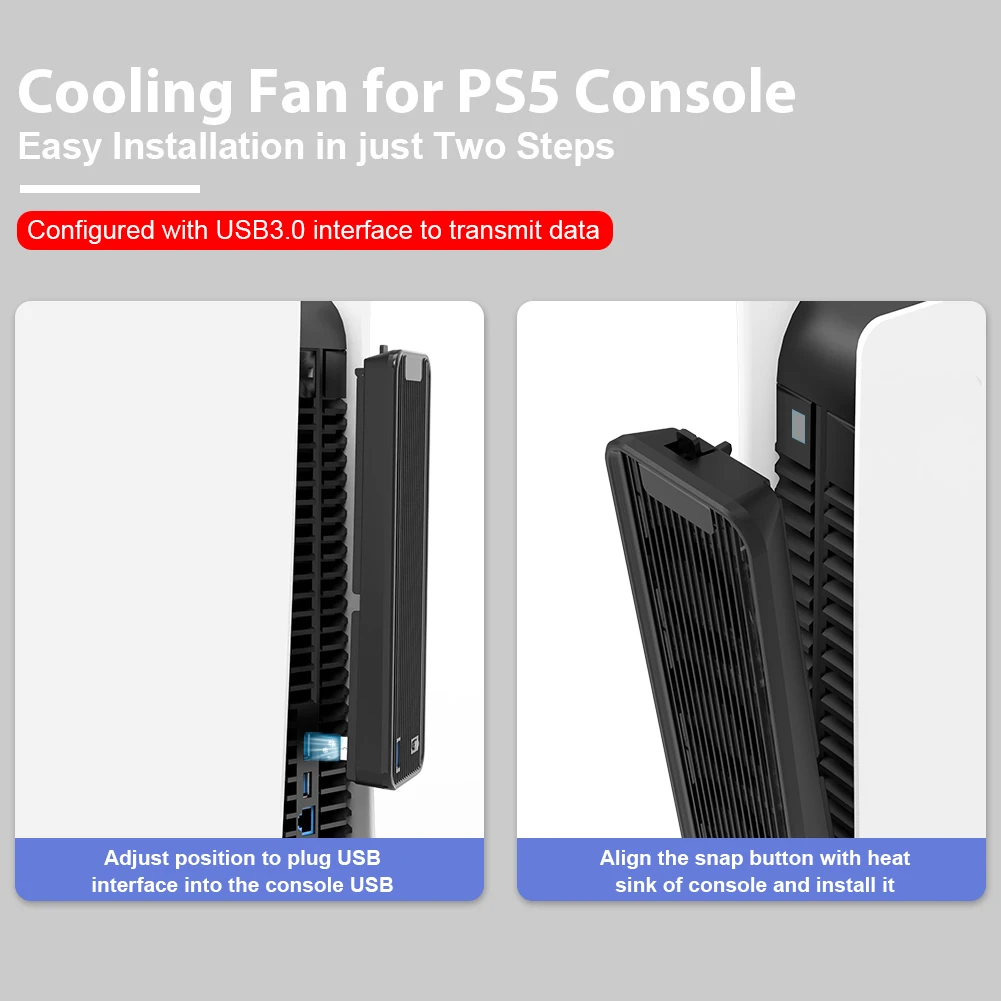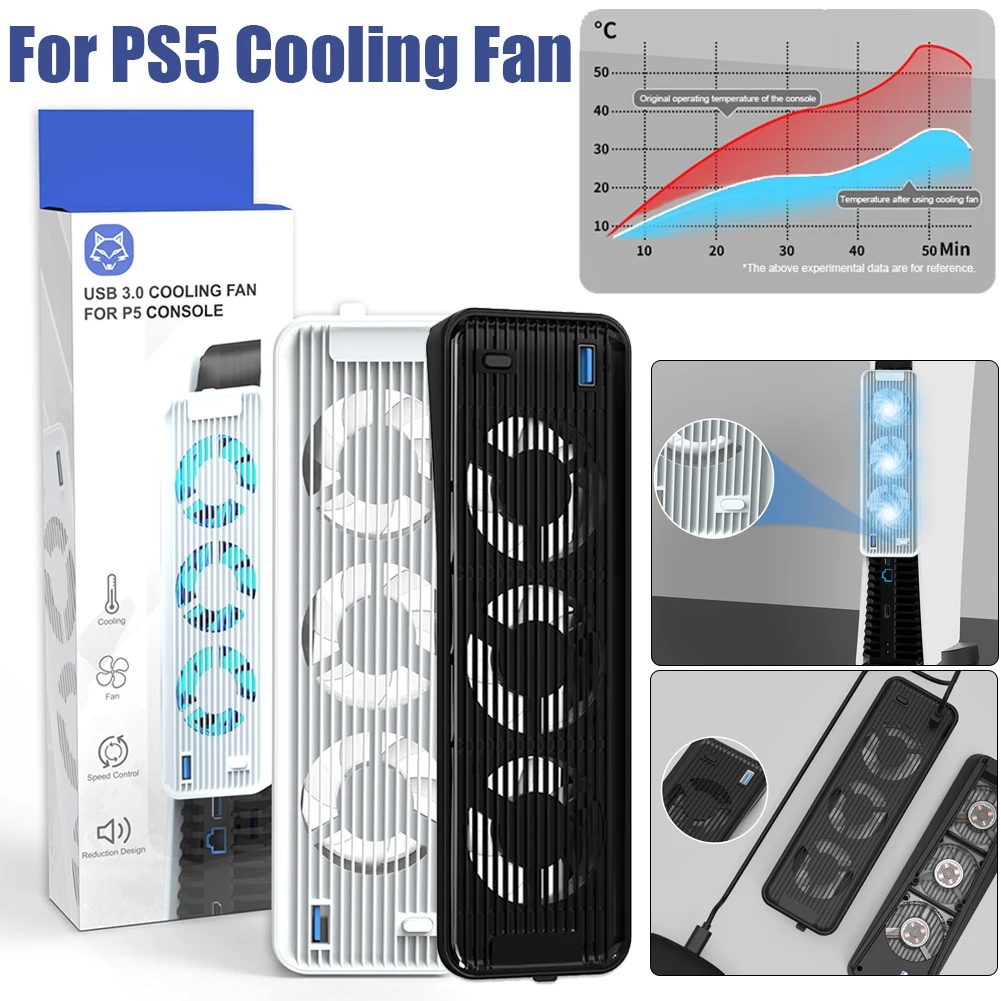Ventilador de refrigeración USB3.0, accesorios de juego de refrigeración, ventilador enfriador silencioso, luz LED de 5500RPM con 3 ventiladores para Playstation 5 Disc y edición digital