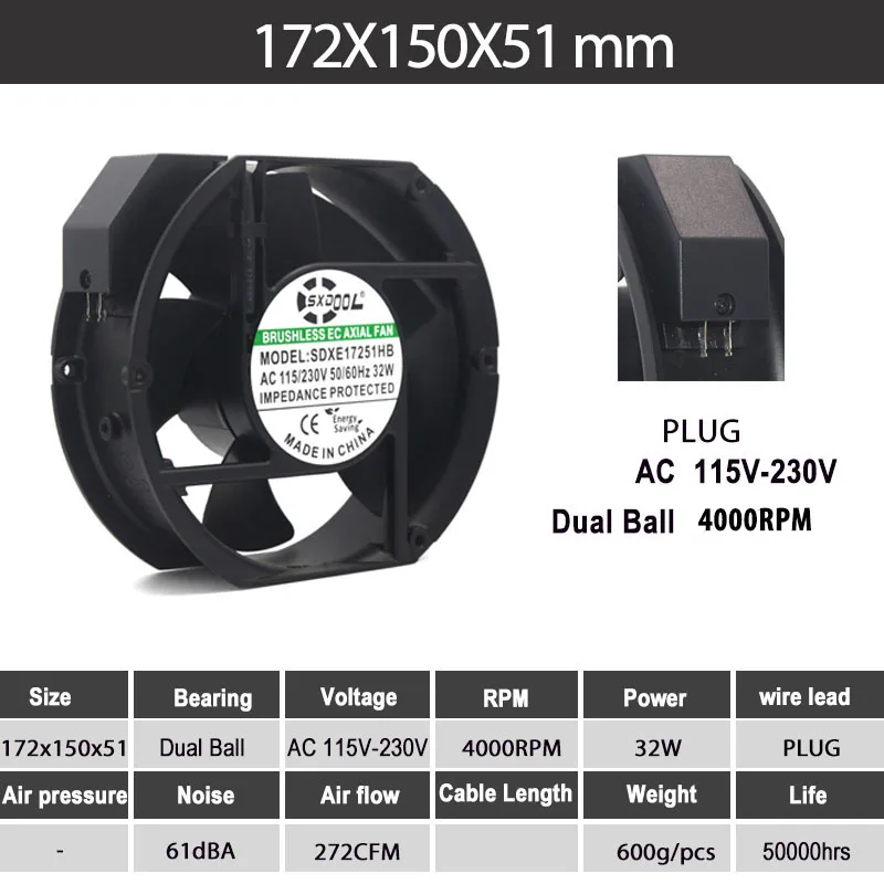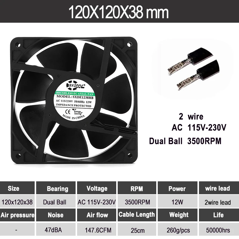 Comprar Ventilador de refrigeración sin escobillas EC AC 110V 120V 220V 240V rodamiento de bolas doble 2 cables 60mm 70mm 80mm 92mm 120mm 172mm tamaño opcional