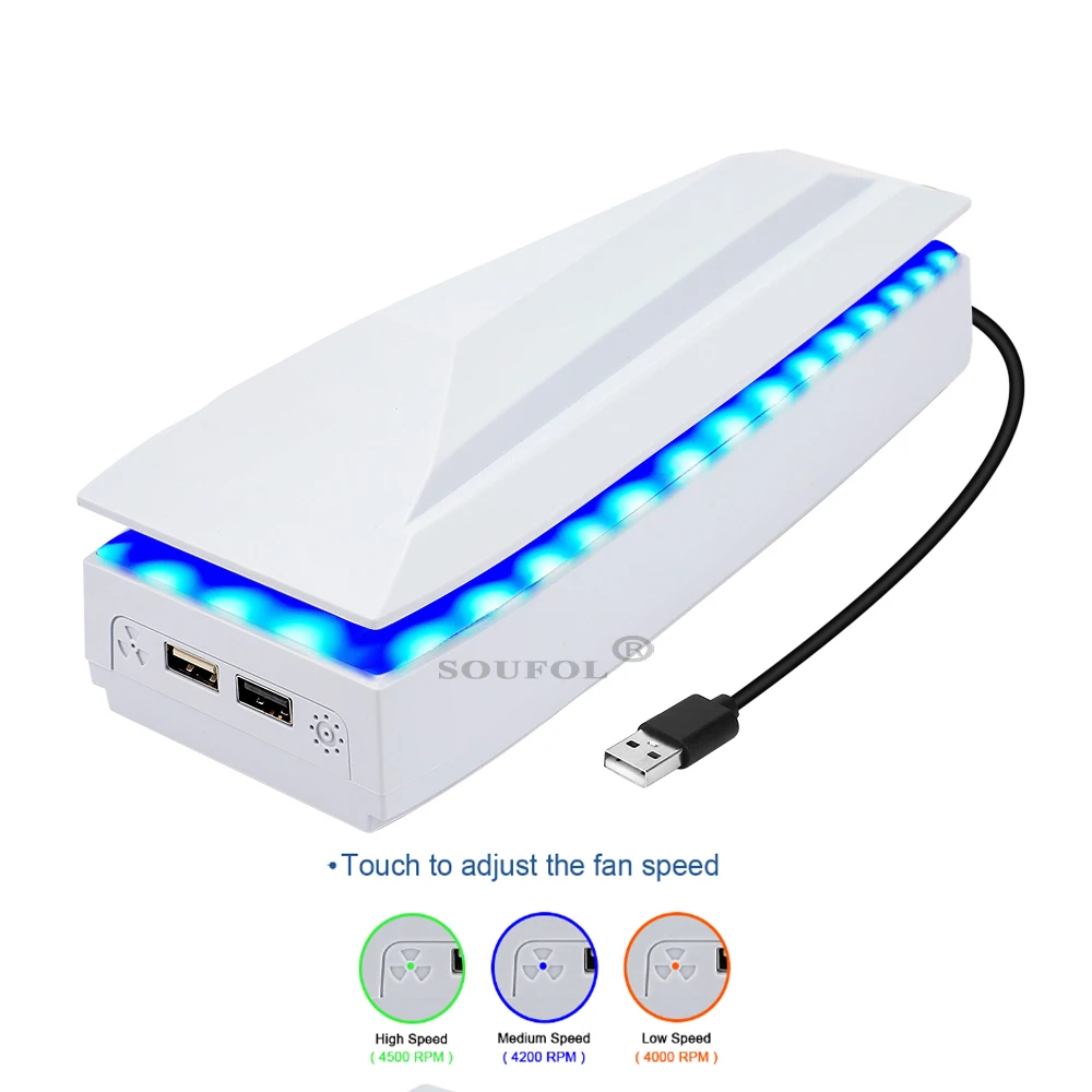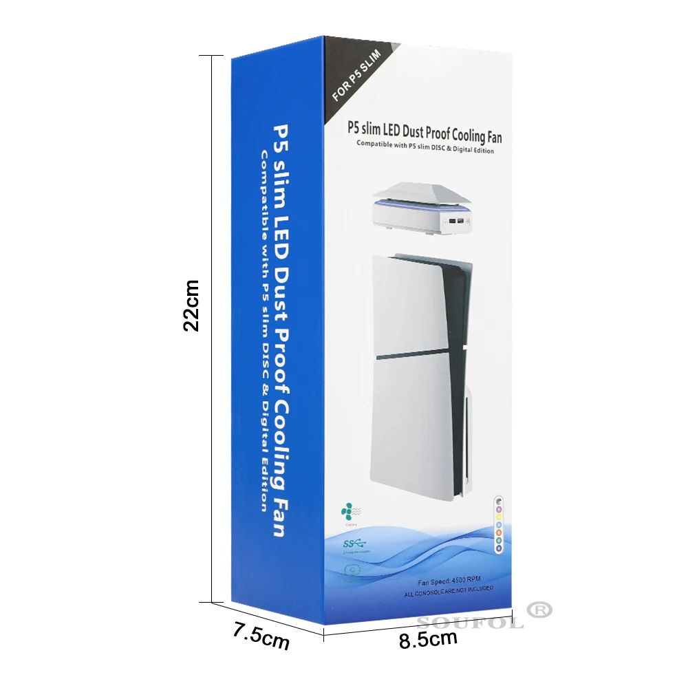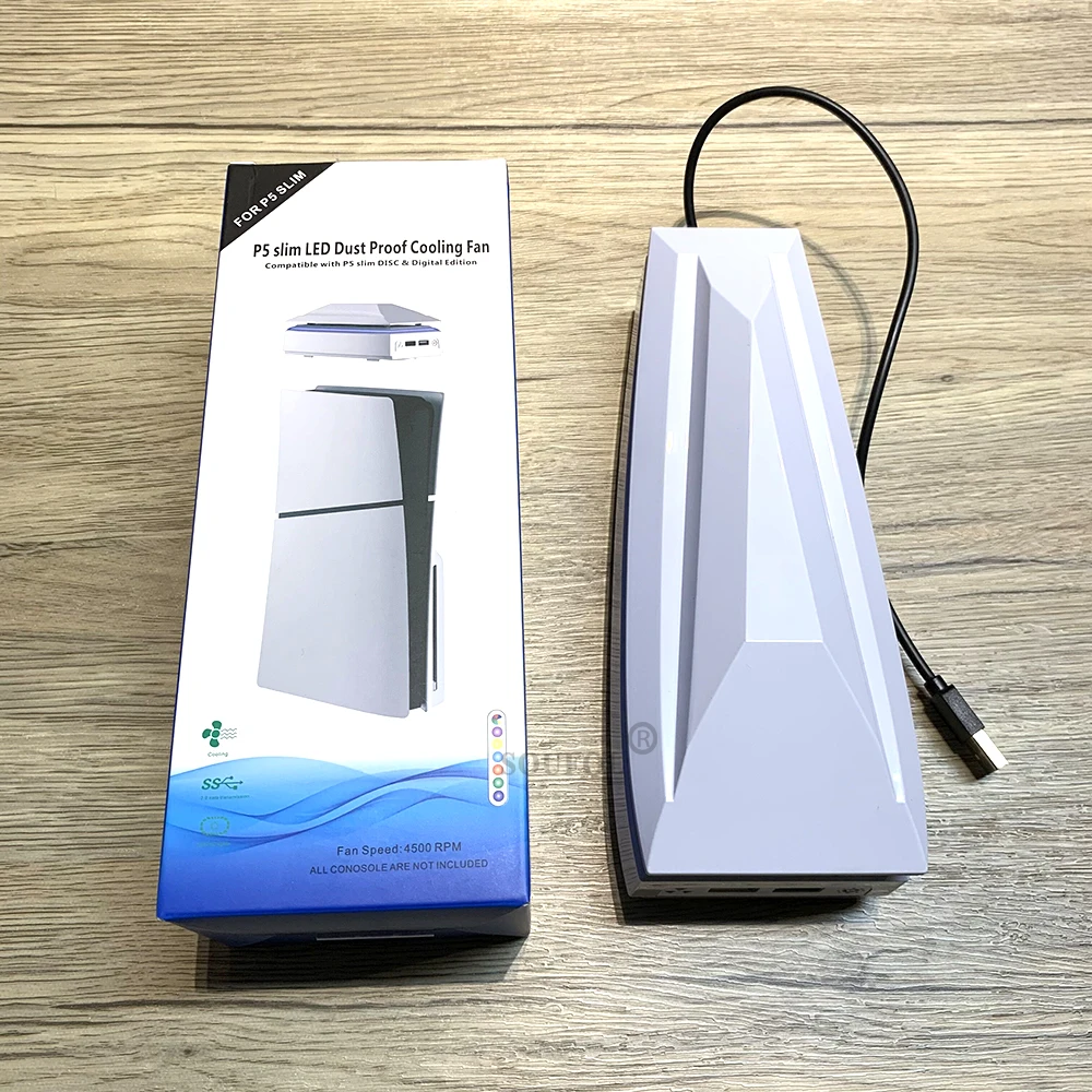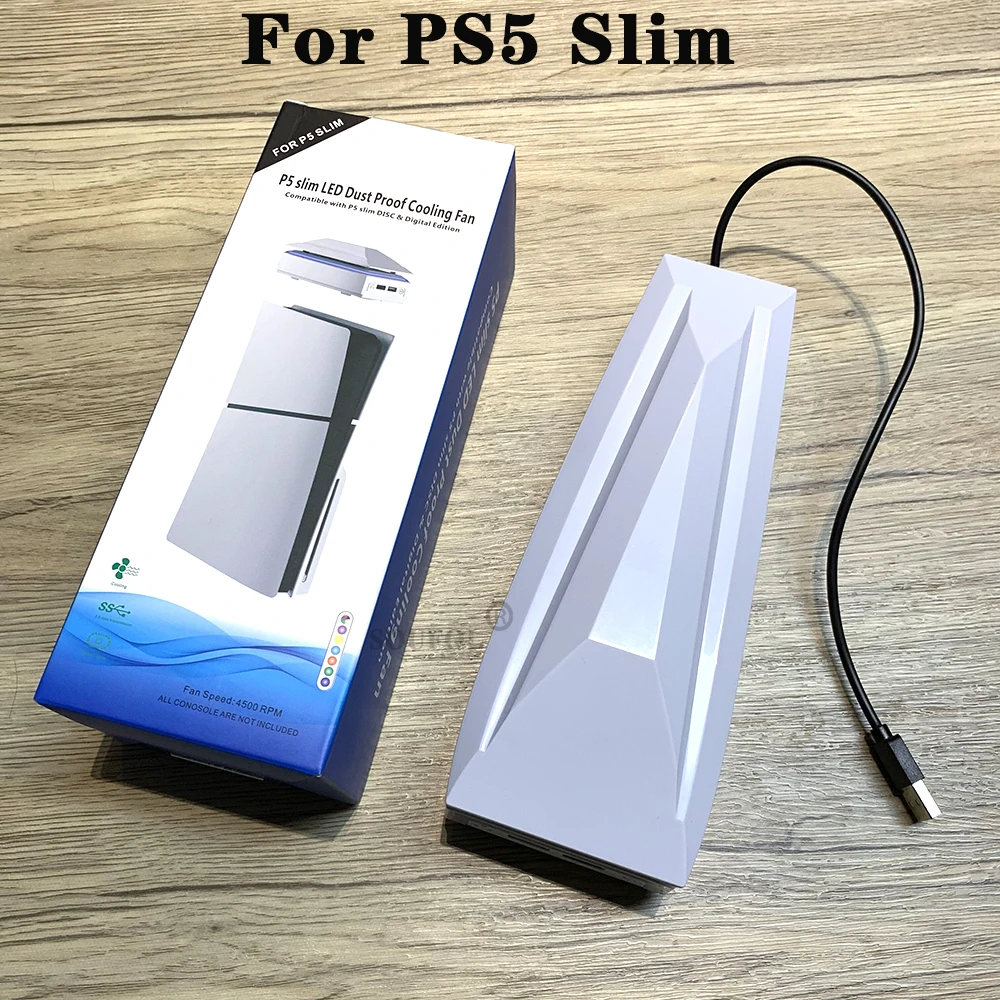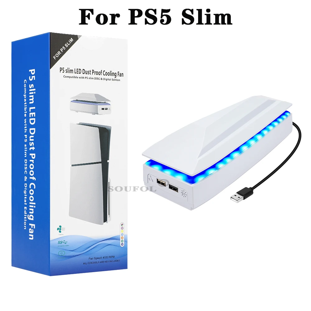 Ventilador de refrigeración superior para PS5 Slim con luz LED RGB, radiador host para juegos, ventilador superior de disipación de calor a prueba de polvo para consola PS5 SlimDescripciones:(1) Este producto es compatible con consolas P5 SLIMgame.El cable de carga USB se conecta al puerto de salida USB de la consola P5 SL.IM u otra fuente de alimentación.