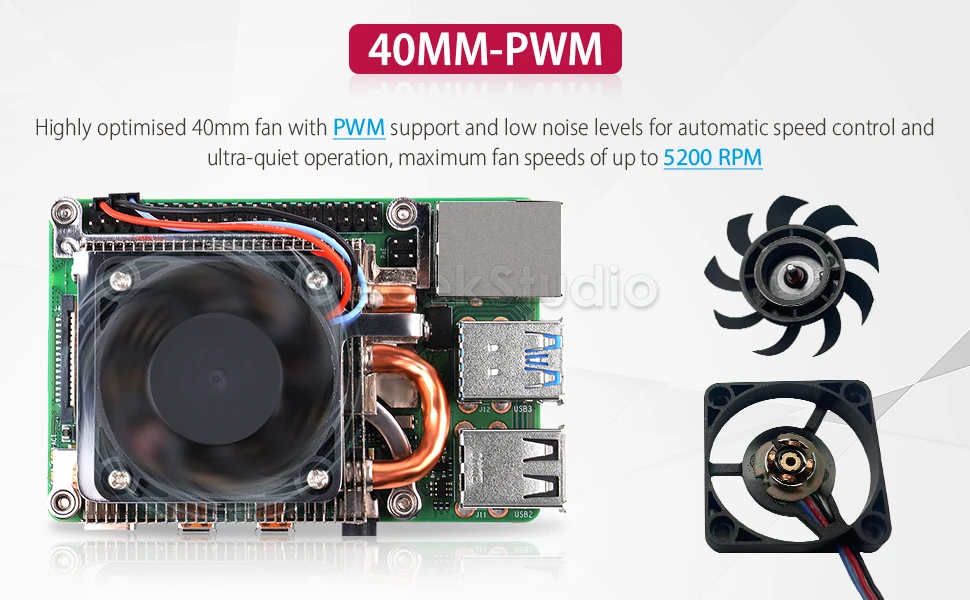 Carcasa Raspberry Pi 4B con ventilador de refrigeración de CPU ICE-Tower de perfil bajo
